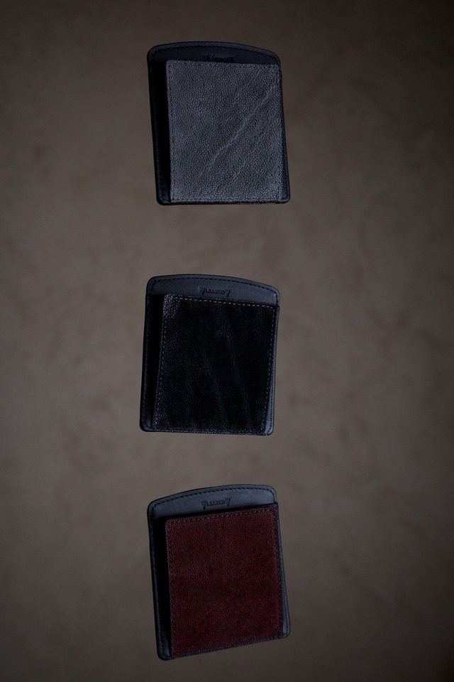 どの財布にも当てはまることですが、収める気持ち良さがある財布っていいですよね。 扱いやすく取り出しやすく収めやすい。このサイズ感もいいんですよ。手のひらにとてもしっくり収まります。 薄くてコンパクト。だけども最低限以上ちゃんと入る。コンパクトウォレットの完成系だと思います。 個人的に使ってて思ったのは、財布が手についてくる感じというか、手の動きに財布が呼応する感じがあるんですよね。使っててホントにストレスなく使える財布です。 右利きの方も左利きの方も同じようにストレスなく使えるのが、地味で伝わりづらいんですがホントに素晴らしいポイントだと思ってます。 毎日持ち歩いてもストレスがない大きさであり、厚みだと思います。 世の中に見つかってないだけで、このコンパクトウォレットは世界を席巻する可能性しかないと思います。 それぐらい完成された使い勝手も抜群で完璧な財布です。 「スティングレイハート」と呼ばれる白い斑点をアクセントとした、ビーズを散りばめたような銀面がとても美しいです。 エイレザーはかなり強度が高く、普段使いで傷つくことは皆無です。その堅牢さから古くから宝飾品や刀の鞘などに使われてきました。 中のレザーもバッファローレザーを配して細部まで作り込んでいます。 エイレザーも長く使用していくことができるのはもちろん、使うほどに光沢が増していくので経年も合わせてぜひじっくりとお楽しみください。 Material : Outside :エイ革(スティングレイ) / Inside : 牛革 color : GRAY / BLACK size : 横幅8.5cm / 高さ9.5cm / 奥行き2.5cm ______________________ スティングレイとは スティングレイは別名「ガルーシャ」とも呼ばれており、ハードな質感と美しいビーズのような突起が印象的な高級皮革です。 スティングレイは英語でアカエイという意味で、ガルーシャはフランスの革職人の名前が由来になっているとされています。 なんといっても「スティングレイハート」をと呼ばれる白い斑点をアクセントとした、ビーズを散りばめたような美しい銀面です。 スティングレイハートは一匹あたり一か所しかなくとても希少価値が高いです。 特徴となっており、強度にも優れているので取り扱いしやすい財布として人気があります。 非常に硬い皮革で、革では珍しく水に強い特性を持っています。 故にとても取り扱いやすく手入れが基本的に必要ないのも魅力的なポイントであるといえます。 長く使用していくことができ、使うほどに光沢が増していくことから経年変化を楽しめるのも嬉しいポイントです。 男性女性問わず商品を選べ、デザインも大人向けな財布がスティングレイの魅力となっています。 年々エイの革の入手が困難になっており、より一層価値観が高いです。特に長財布を取ることのできるサイズのエイが入手困難になっています。 ______________________ ※革の表情は人の肌と同じで、一つ一つ違うことをご了承くださいませ。 ※最初の写真、左から右に向かってGRAY / BLACKです。 ・薄くてコンパクト:ポケットにもすっきり収まるサイズ感。 ・改良型BOX型コインケース:フラップを上下逆に配置することで、コインが落ちにくい安心設計。 ・札ばさみ仕様:お札を挟むだけで、しっかりホールド。 ・カード収納力抜群:見た目以上にカードが収納可能で、最大10枚まで対応。 ・2つのカードポケット:整理整頓がしやすい便利な構造。