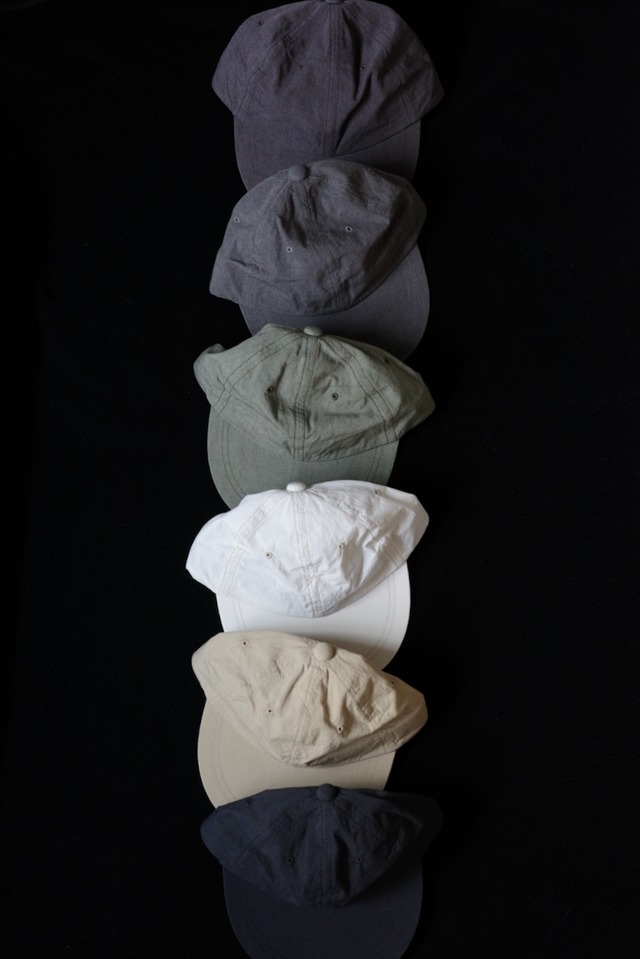 定番の6パネルキャップも、これからの季節に最適な素材に変わって再登場 今回は二種類のコットンナイロン生地を採用しています。 前でも後ろでも抜かりなく被れる、完成された面構え。 バックルやパーツなど細部まで張り巡らせたこだわりを、ぜひ感じてください。 身なりの仕上げを整えてくれる、男前な被りものです。 今年の色味も、どうぞお楽しみください。 fabric 1: 60% COTTON / 40% NYLON 2: 50% COTTON / 50% NYLON size : FREE ツバ : 8cm / 高さ:11cm ※一番最初の写真上から下に向かってFudge / Gray / Olive / Sand / Beige / Charcoalです
