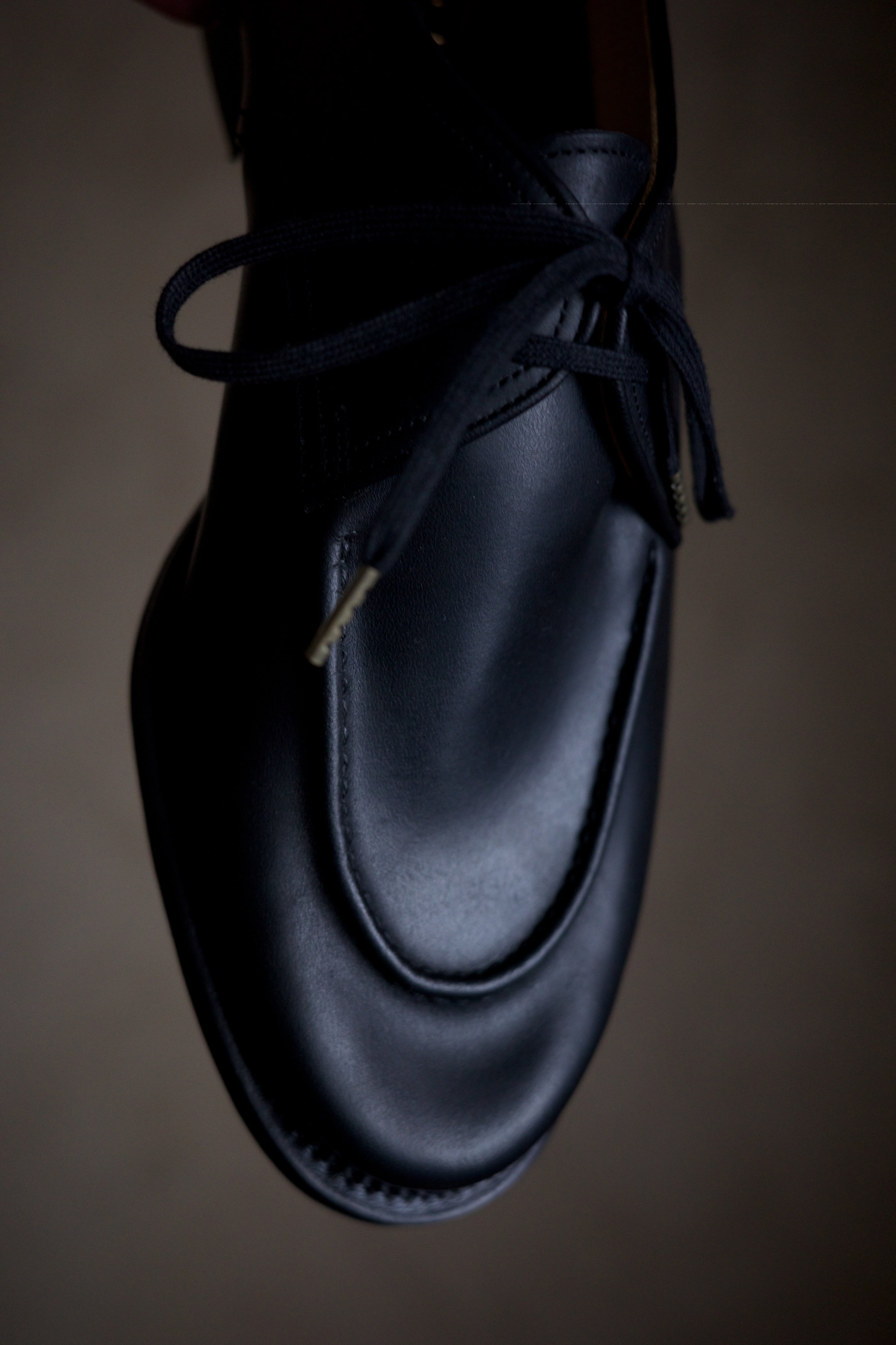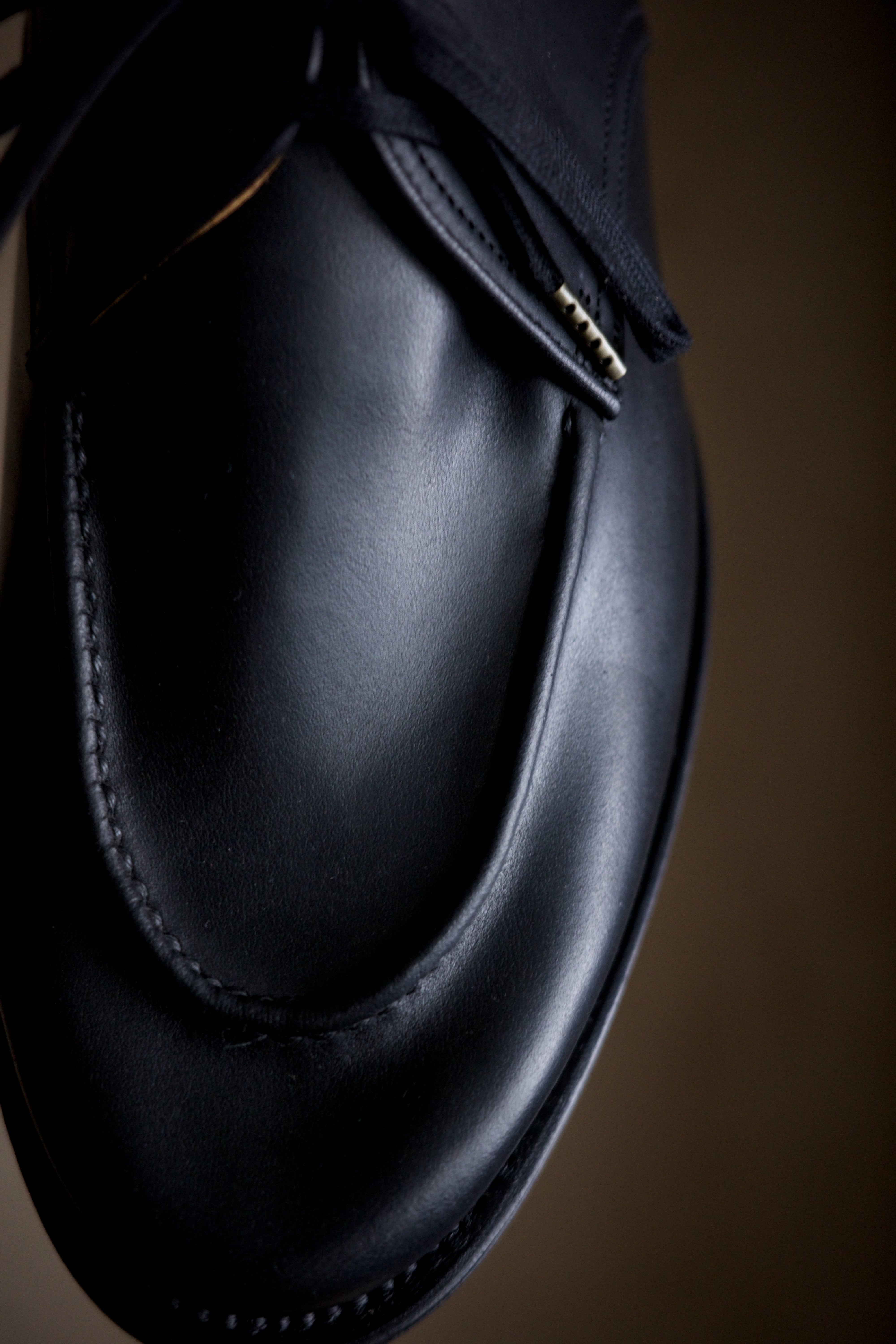 ぐぐぐっと低く設定したトゥが印象的ですが、ハンドモカを加えることで立体感のある佇まいになってます。これがあるのとないのでは大違い。