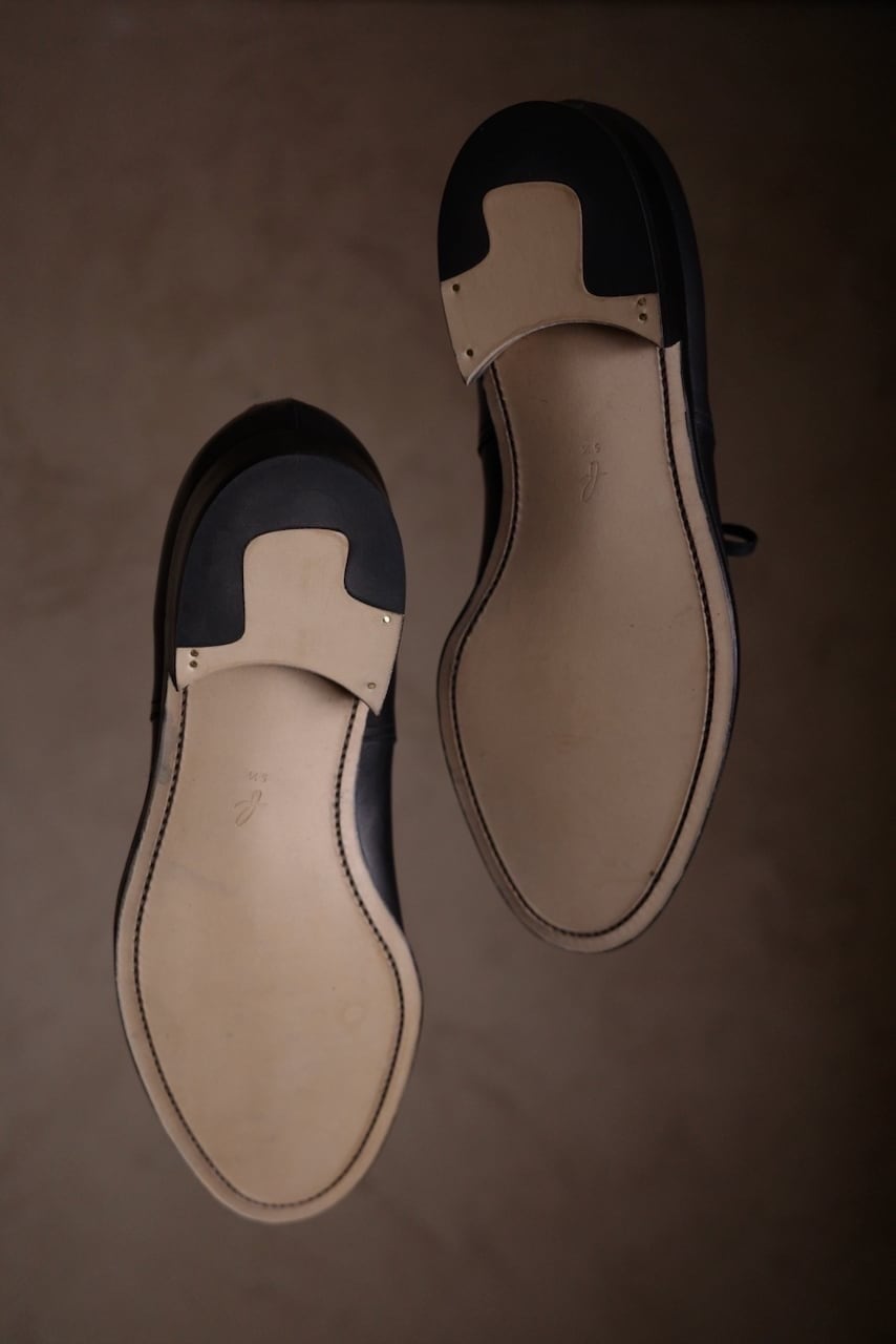 ソールなどのインクの移染も敢えてそのままで加工してます。ですので、ソールに色が移っていたり革にシワやスレが入ってたりしますので、そちらご了承いただける方のみご購入くださいませ。