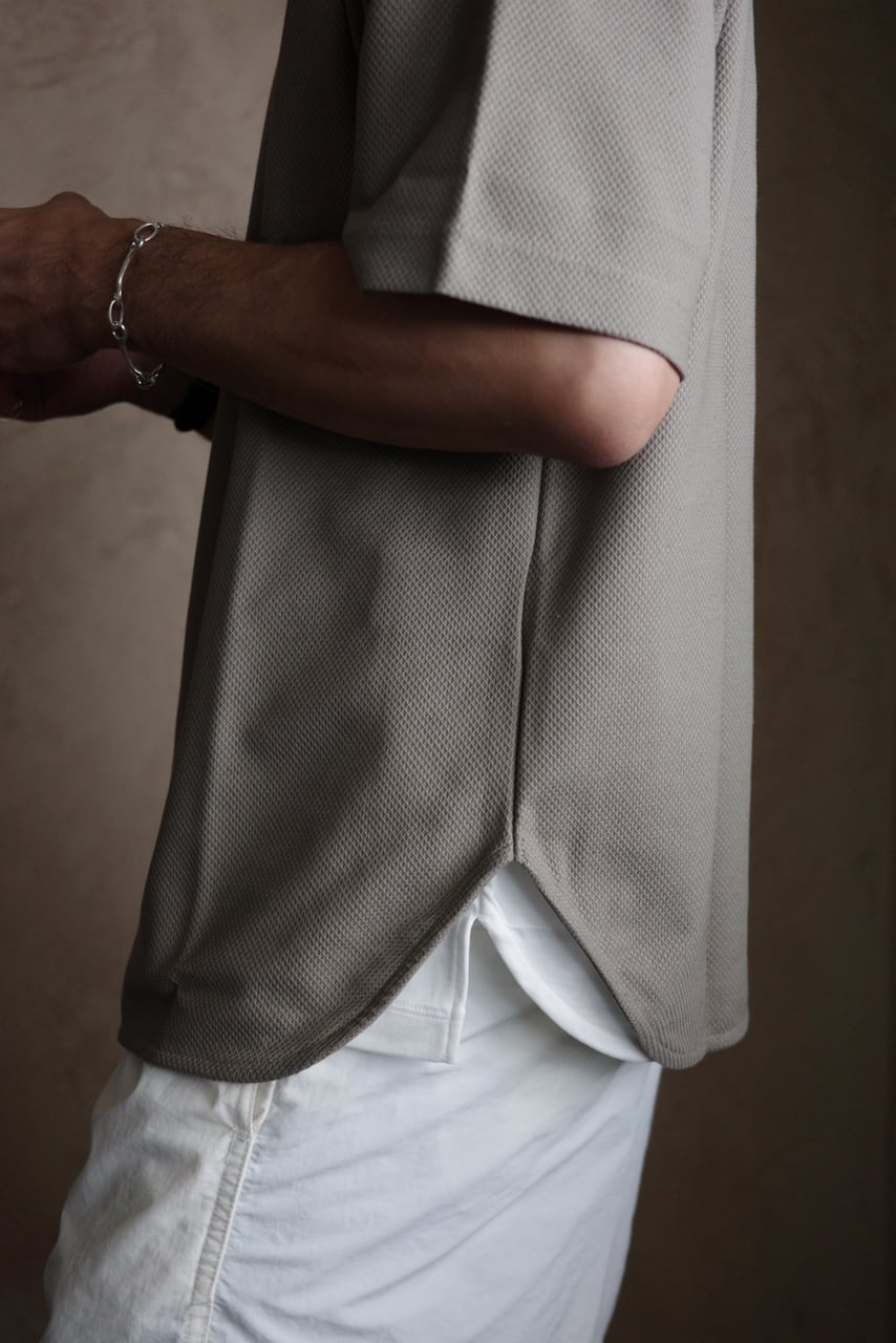 裾をシャツのようにラウンドさせることで、ポロシャツの雰囲気を残しながらもプルオーバーのシャツのようにも着こなすこともできます。