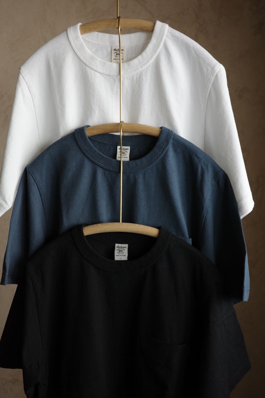 乾燥感がありザラッとした肌触りが特徴のアメリカ綿を、空気紡績によって粗野な表面感に仕上げたポケットTシャツです。時代が変わっても着れる一枚だと思います
