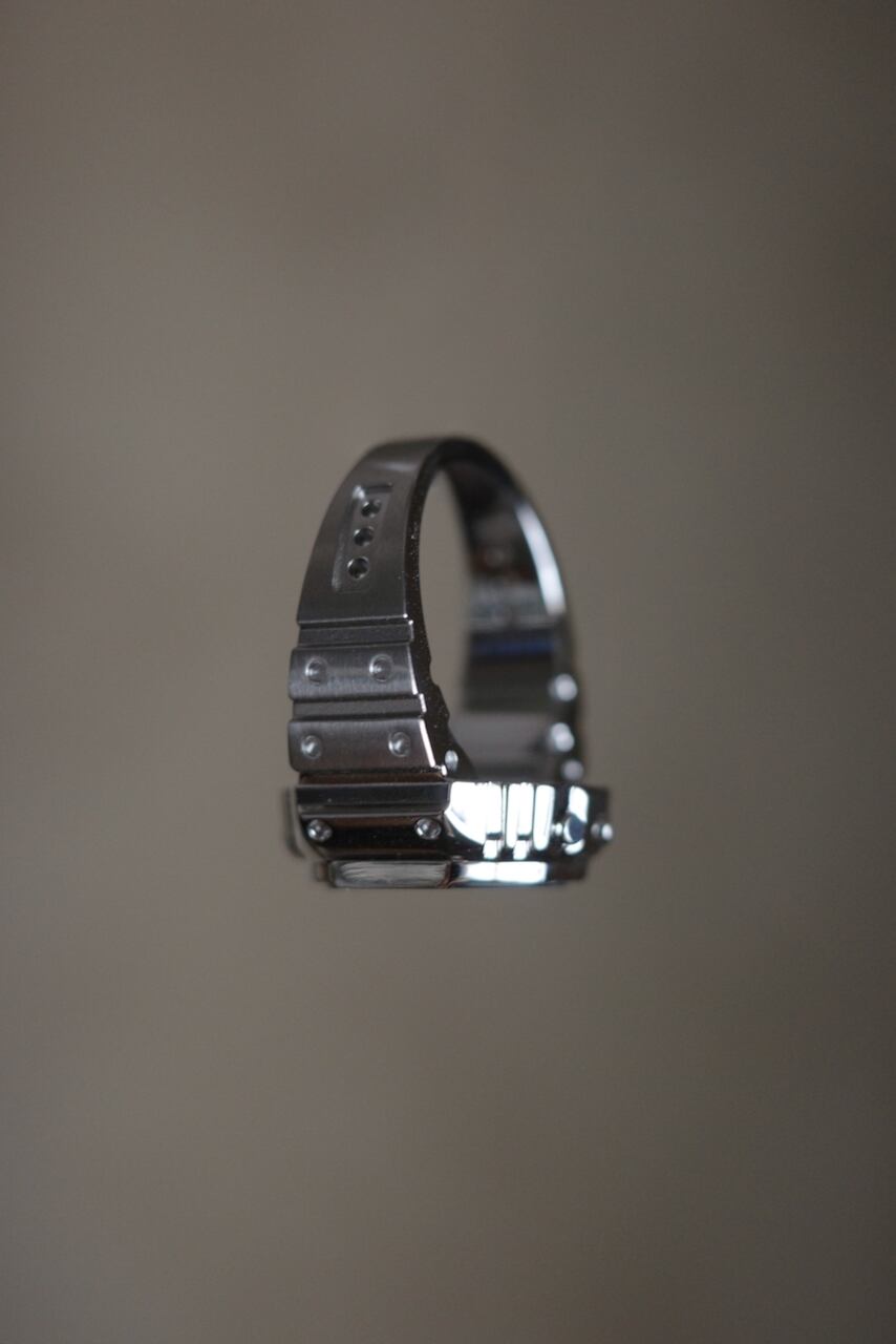 カシオウオッチの複雑造形を指輪サイズのフルメタルデザインで細かく再現。さらに、ガラス接着技術により気密性を確保。電池交換可能でありながら、日常生活用防水を実現しています。