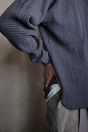 ゆるめの腕周りと、袖の溜まり。このフォルムがたまりません。ほどよいゆとりも良いですよね。個人的にも大好きなシルエットに仕上がってます。
