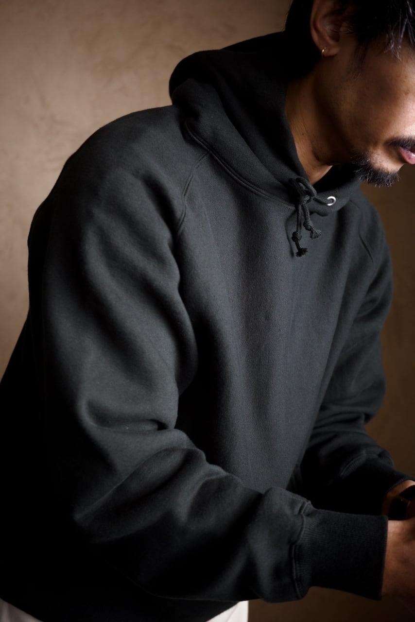 ゆっくりと編み立てられた裏毛生地はふんわりとしてモチモチ、それでいてかなり軽く暖かい。ヴィンテージ感を踏襲しつつも現代的なデザインに仕上げている冬には手放せないアイテムです。