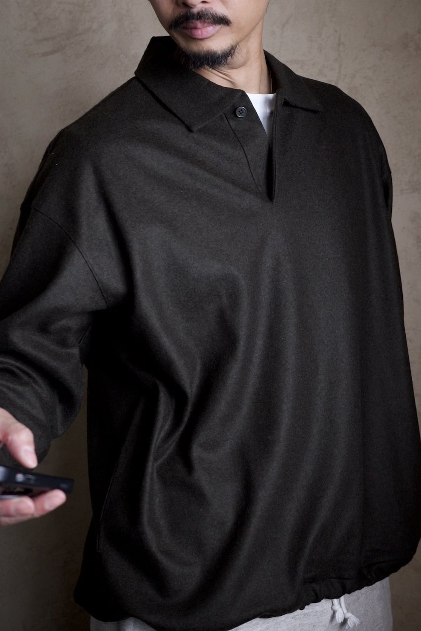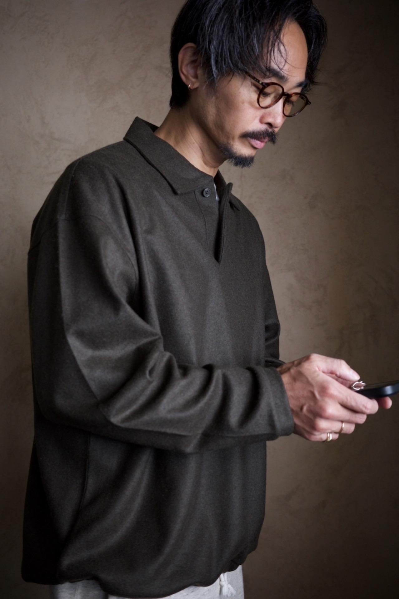 ラガーシャツのような前立て仕様で、程よく無骨なエッセンスが入るところも良い塩梅です。