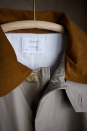 今回は古典と伝統を強く意識した一着。カラーリングにおいてもストレートに王道ワンカラーのみ。潔さと気持ちの強さが静かに込められてます。