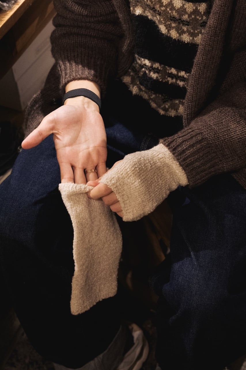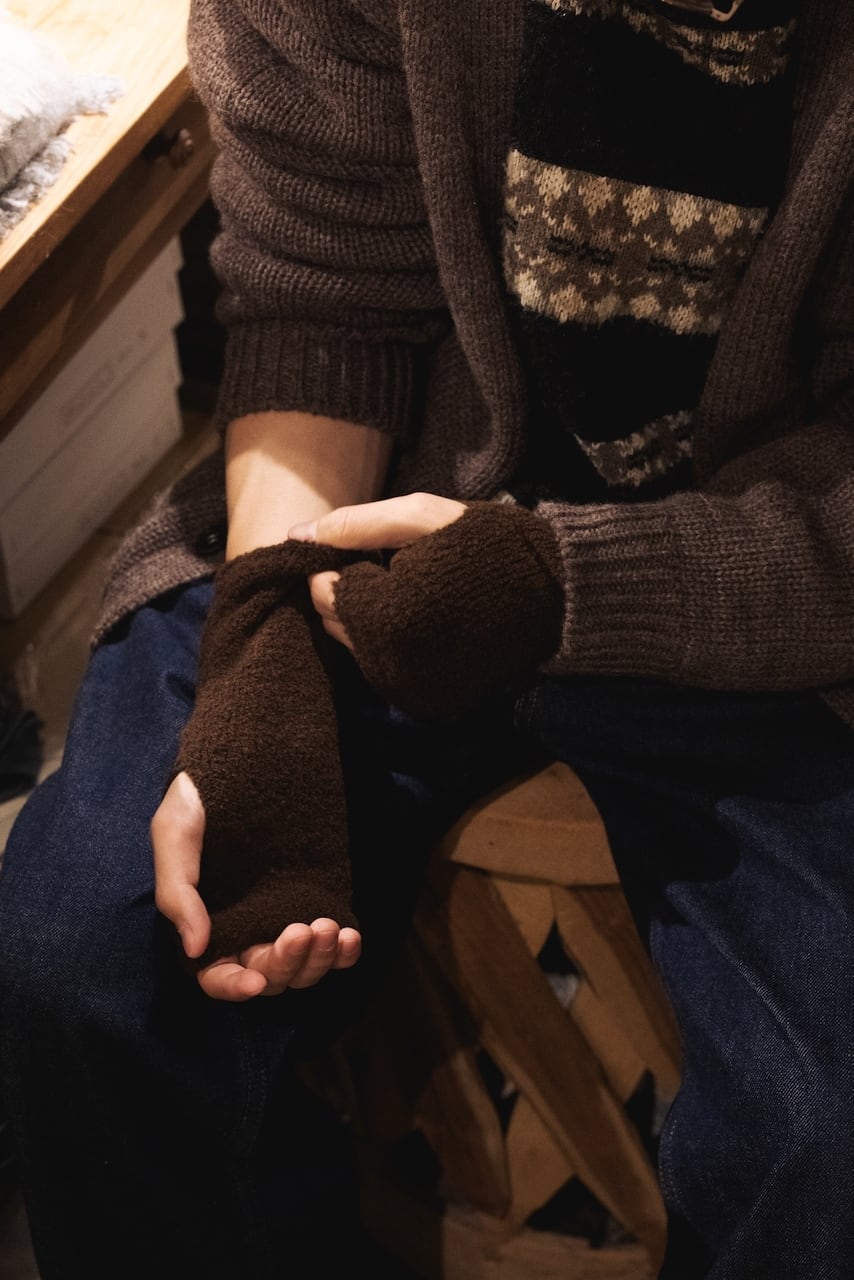 ウールの糸を使用し、フリースのような生地感に仕上げたハンドウォーマーです。