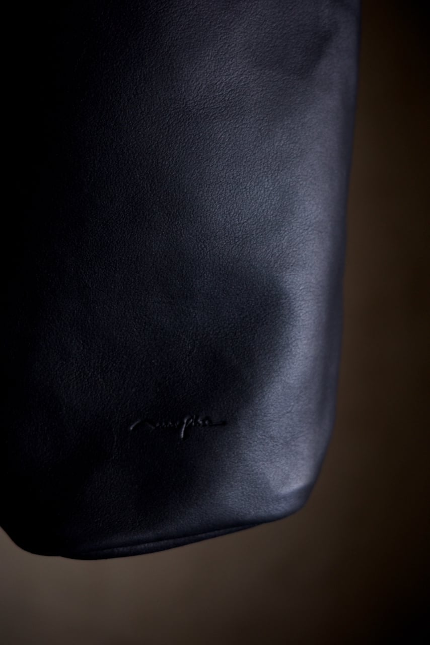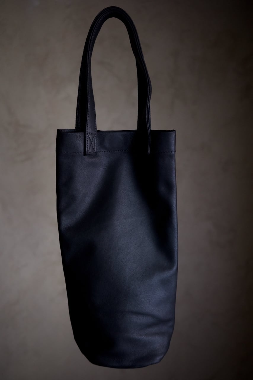 しなやかで置いたときのシワの入り方や佇まいも素敵なボトルバッグ。
