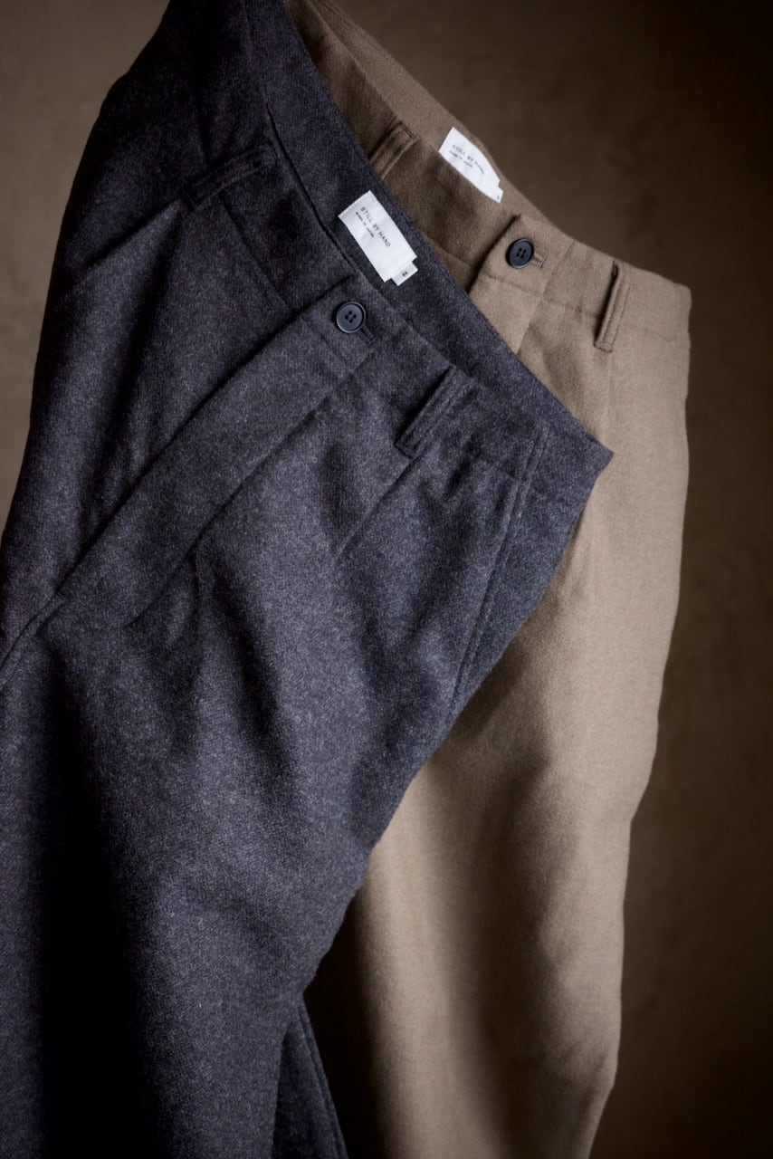 甘く柔らかく織ったオリジナルのウール生地は、とても滑らかな肌当たりで落ち感も美しいです。