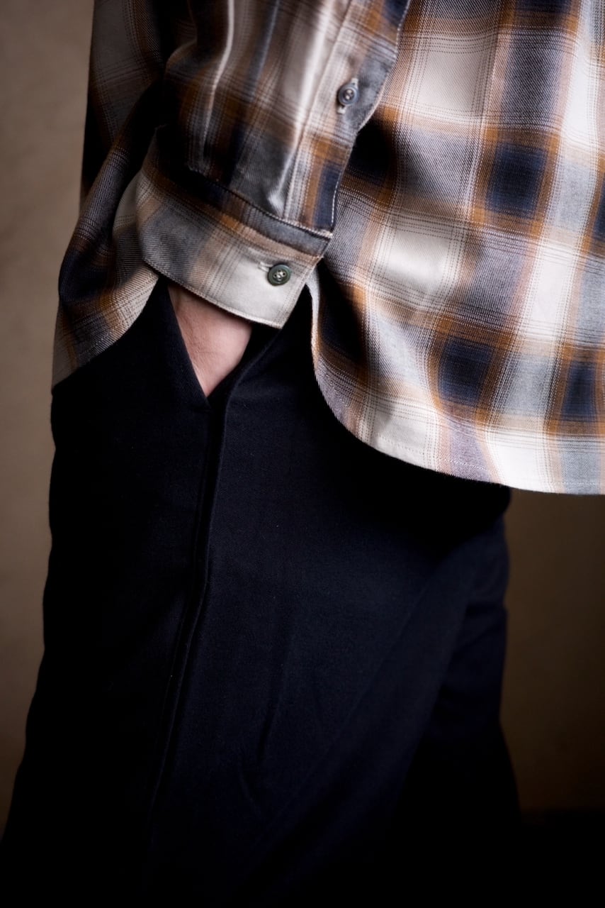 カシミヤのような触り心地をコンセプトに開発された、ポリエステル・ヴィスコースのストレッチ生地は、とろりとしていて心地良い暖かさが足を包んでくれます。