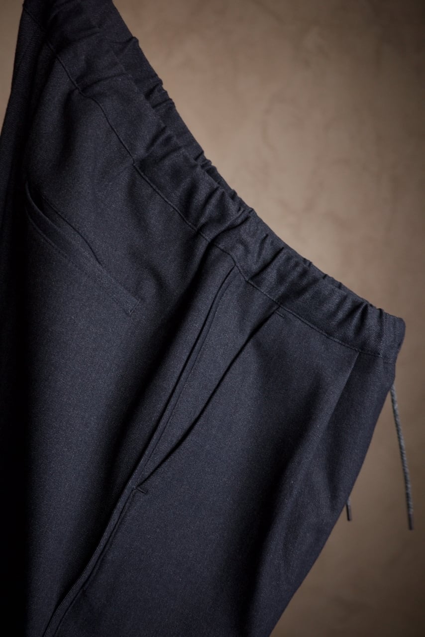 落ち感も良く、サイドのさりげないラインがほど良きアクセントに。ウエストもゴム+紐のイージー仕様なので、着脱も楽々