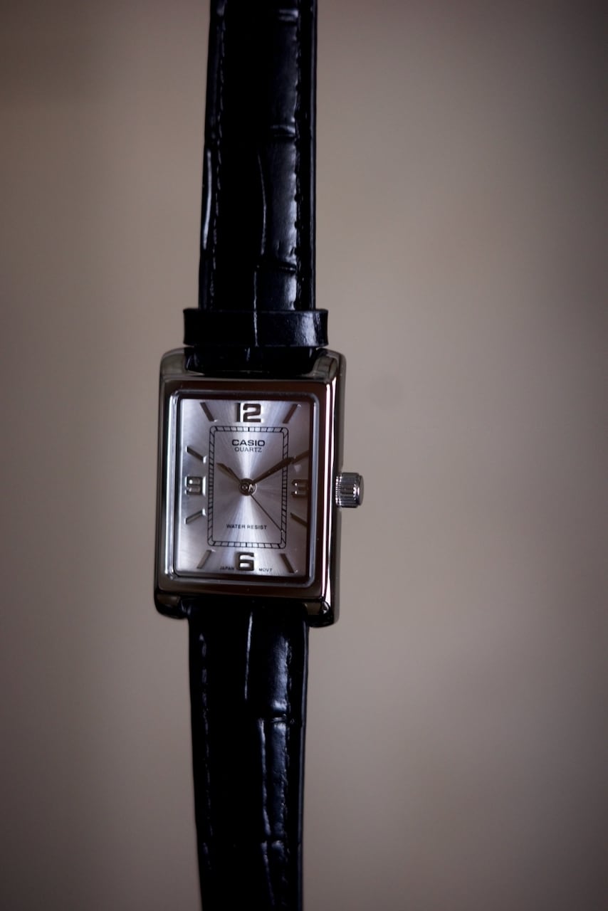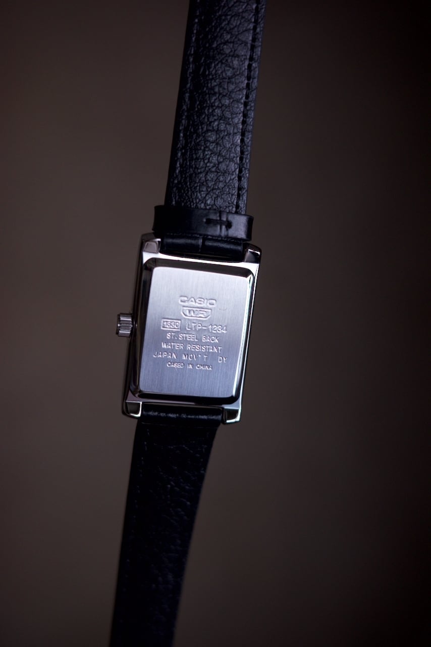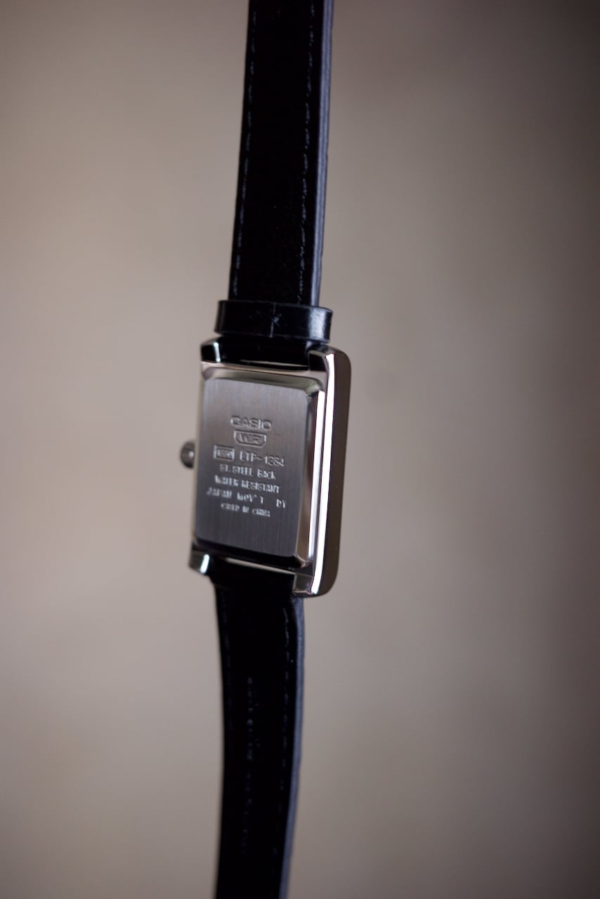 シルバー×シルバーの上品な文字盤。洗練されたレクタンギュラーのデザインも良い佇まいです。