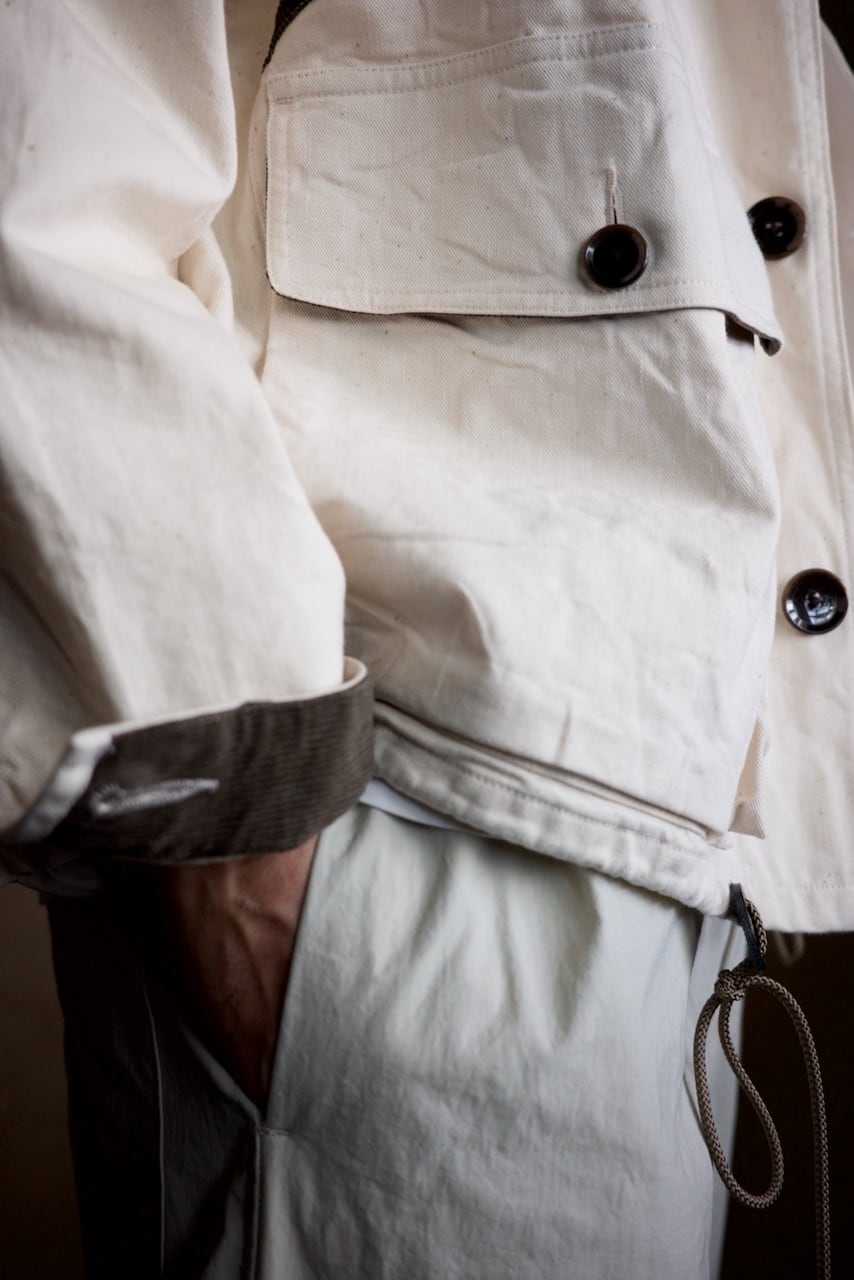 狐狩りのストーリーから生まれた馬乗りのハンタージャケット。粗野で無骨。野暮ったくもありながら色気が漂う一着になりました。