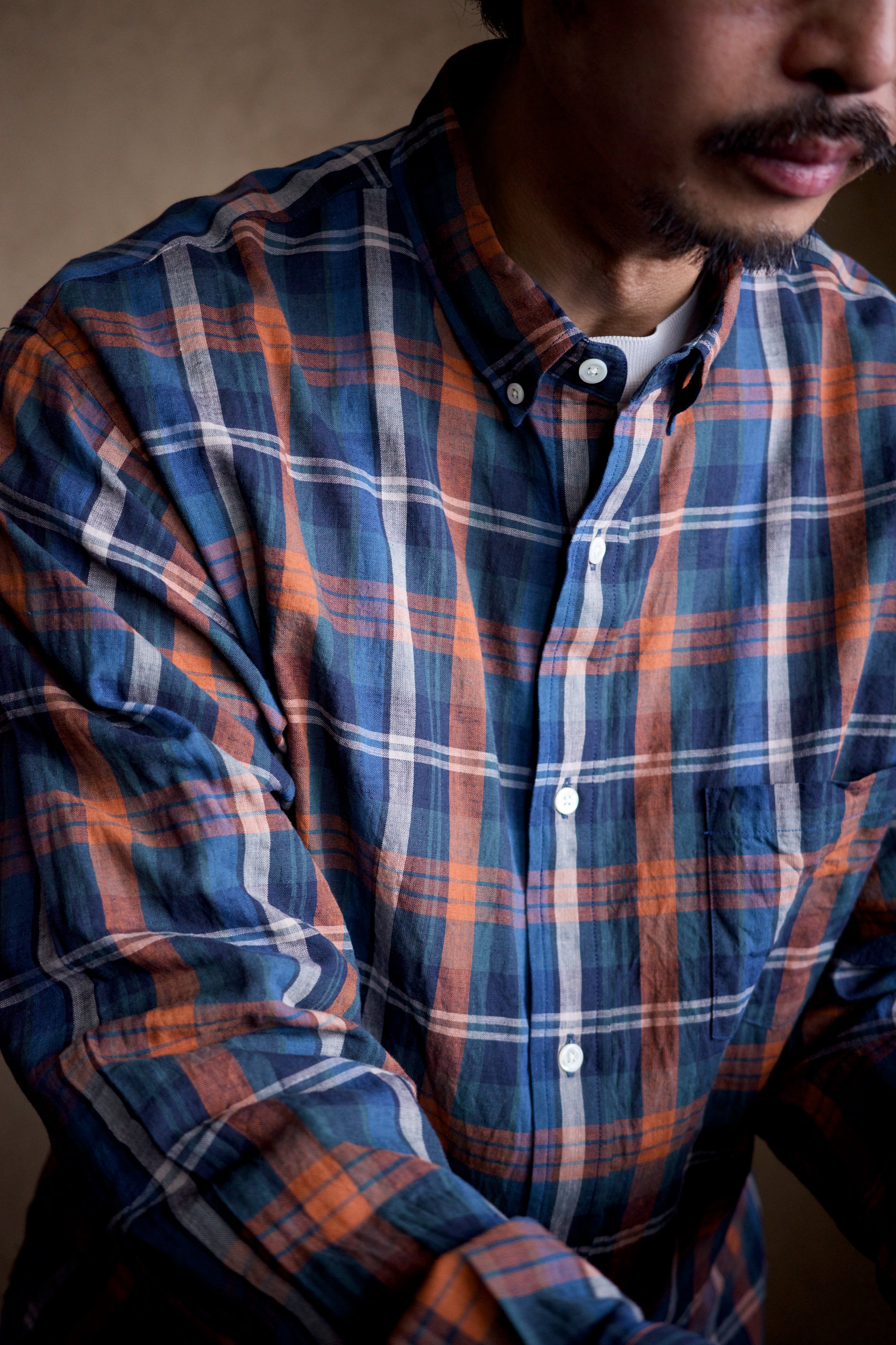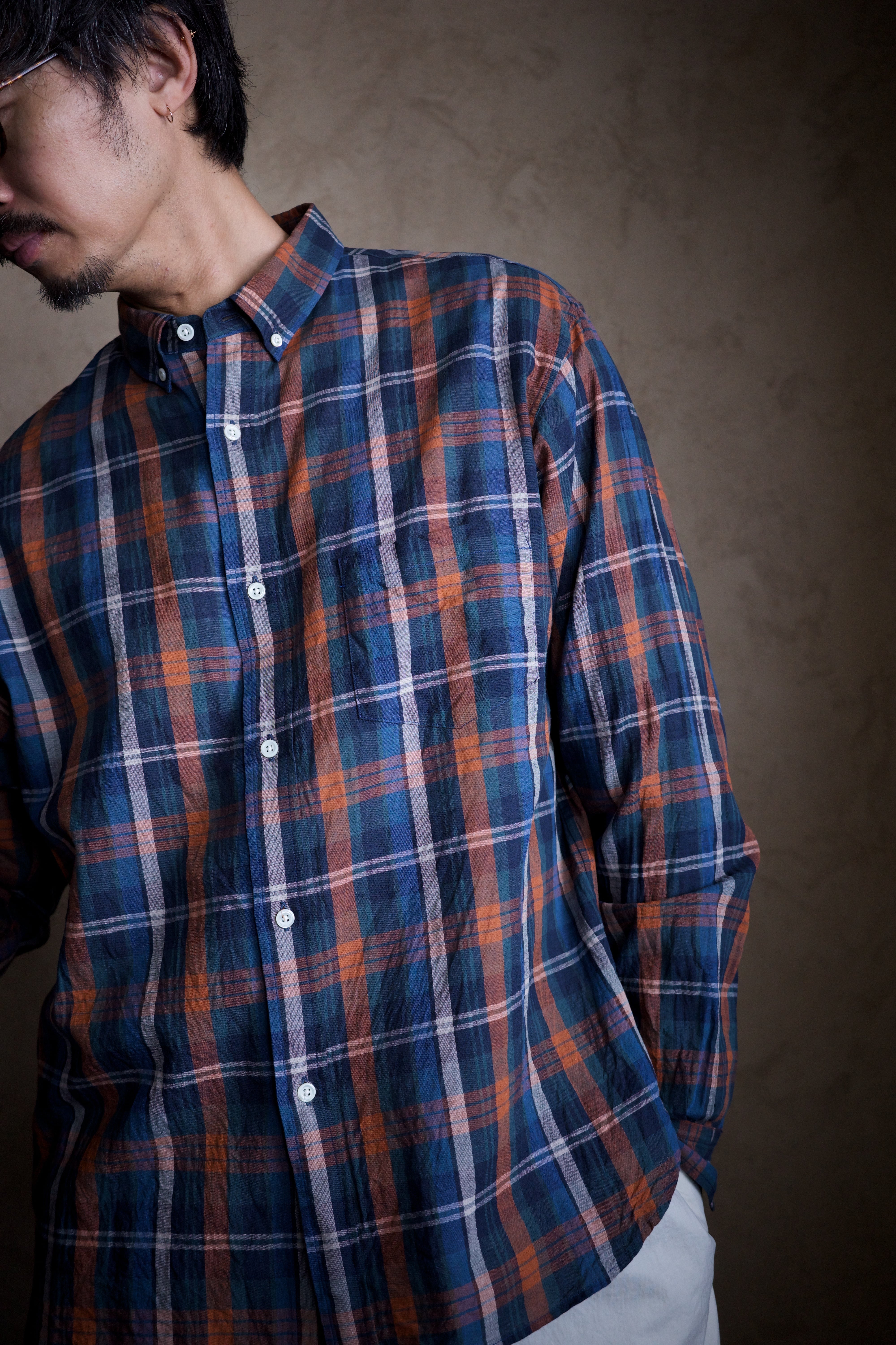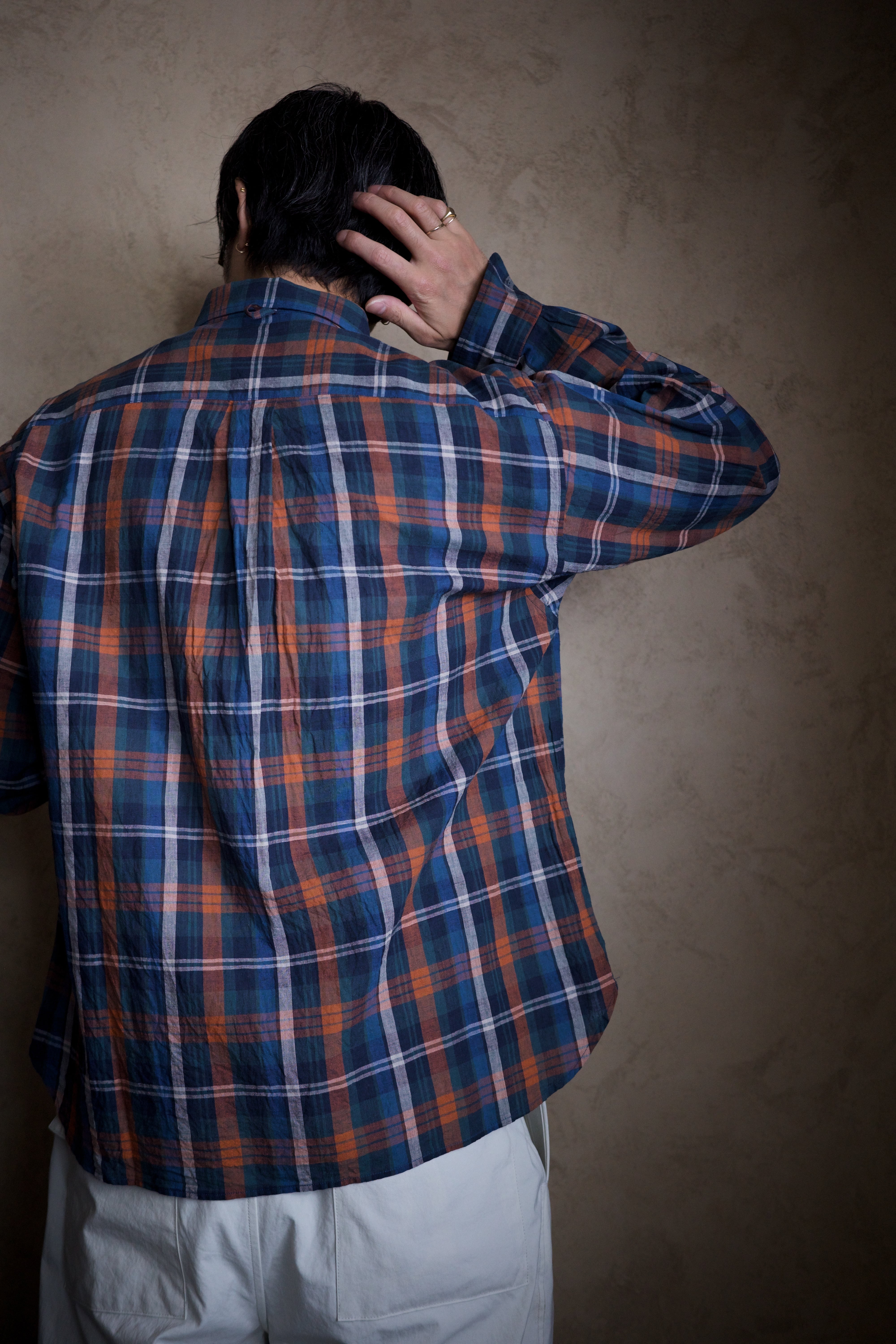 ありそうでないクラシカルなチェック柄は、その色の掛け合わせもらしい色味に仕上がってます。オレンジの差し色も最高です