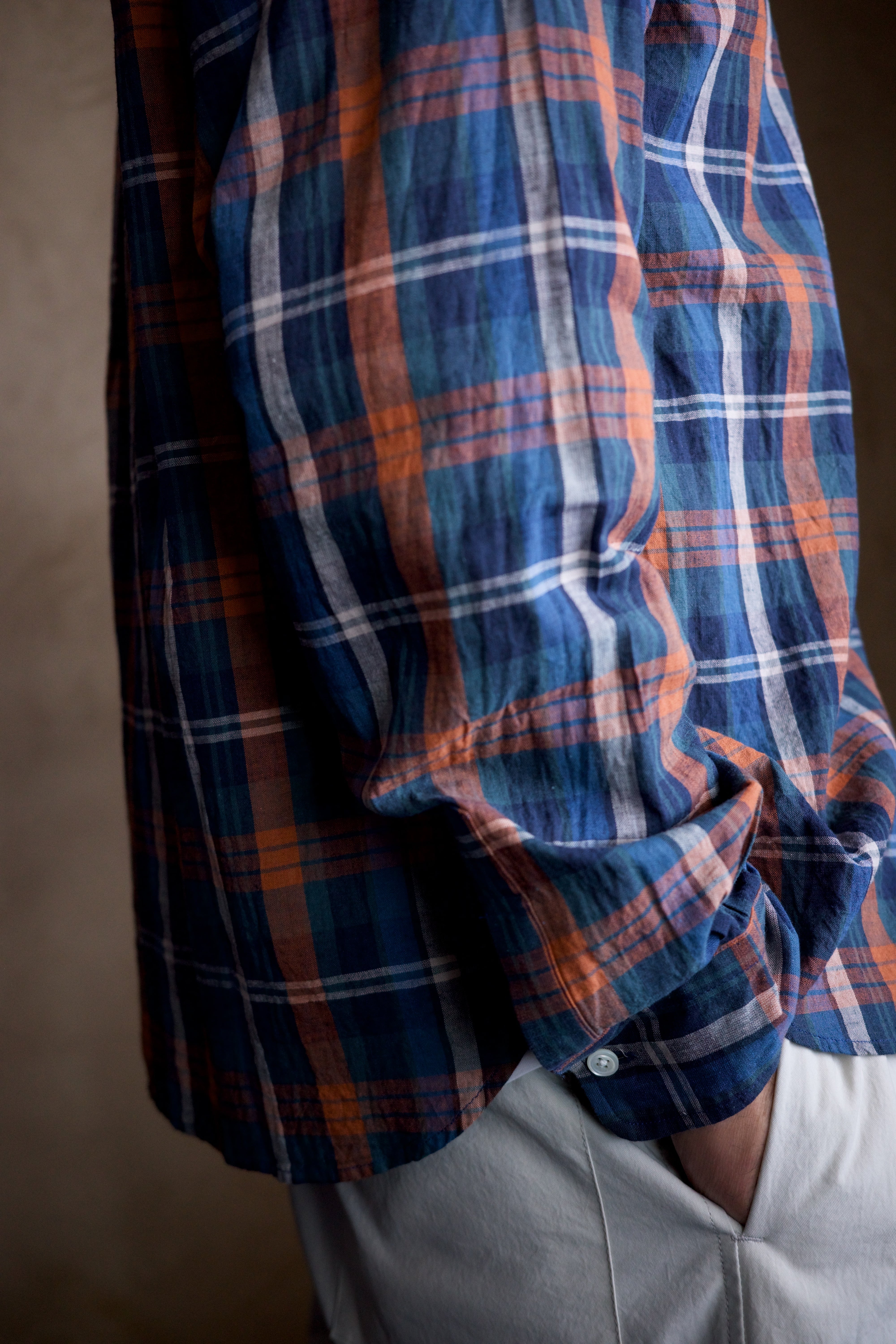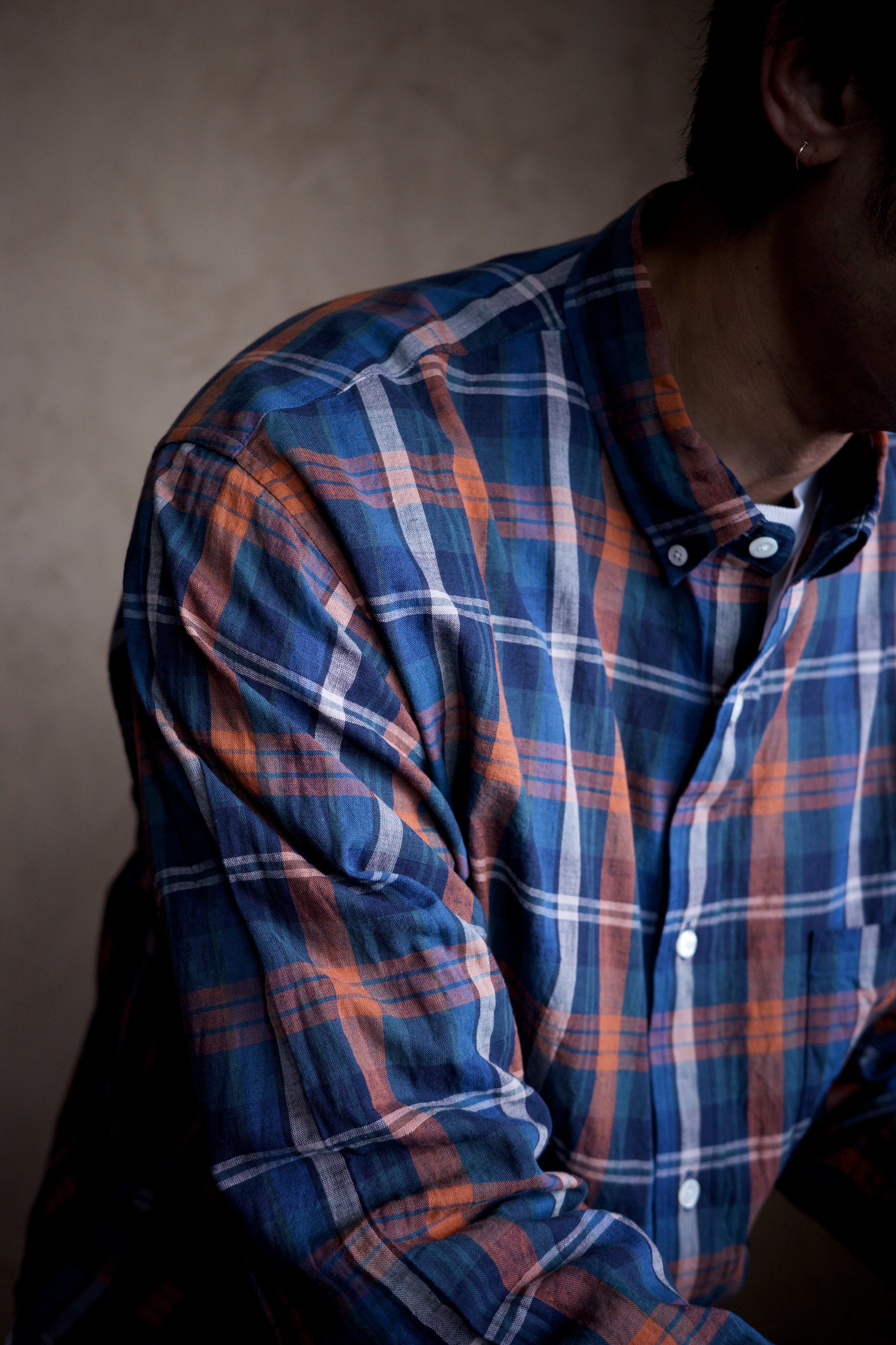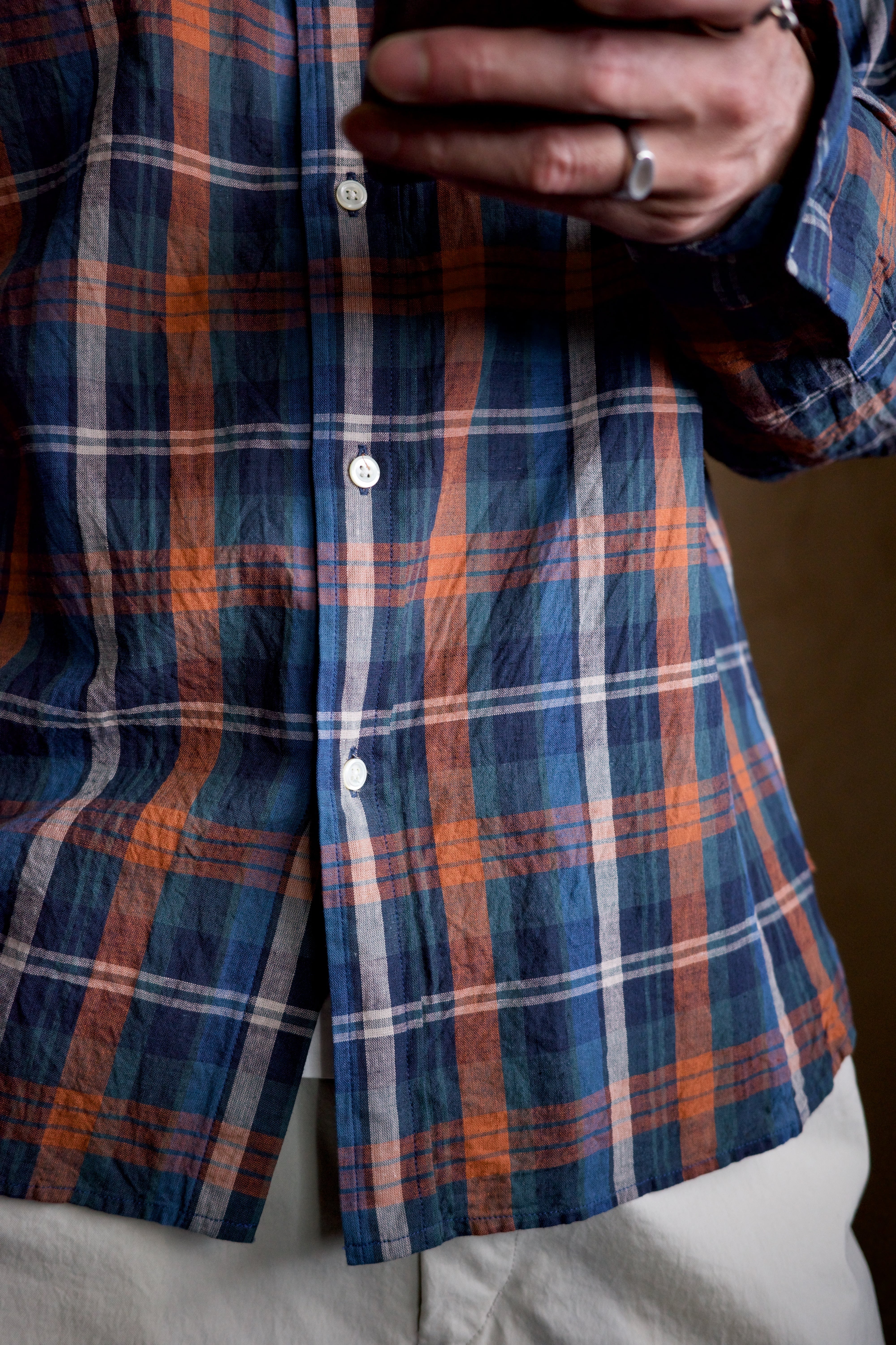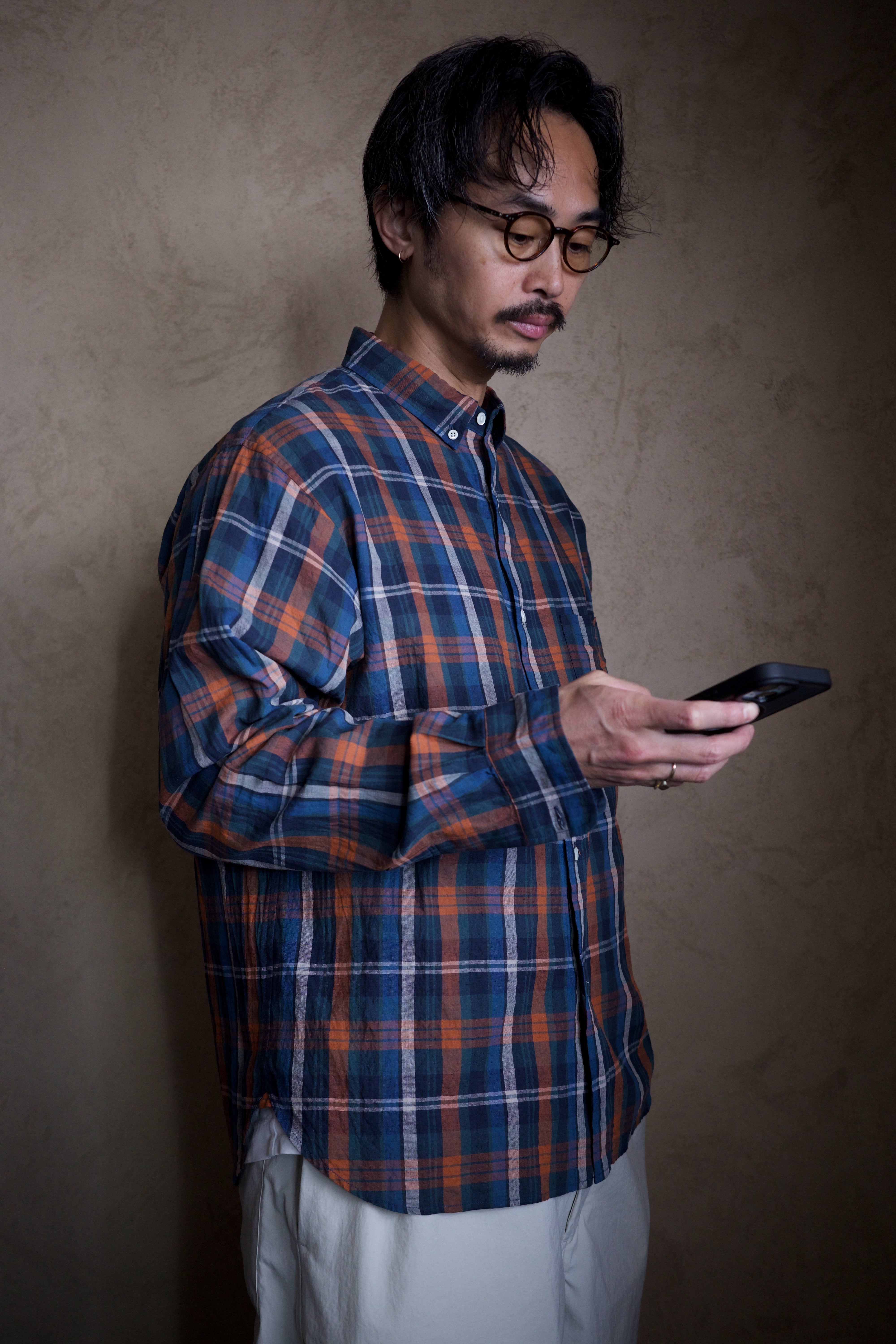 ありそうでないクラシカルなチェック柄は、その色の掛け合わせもらしい色味に仕上がってます。オレンジの差し色も最高です