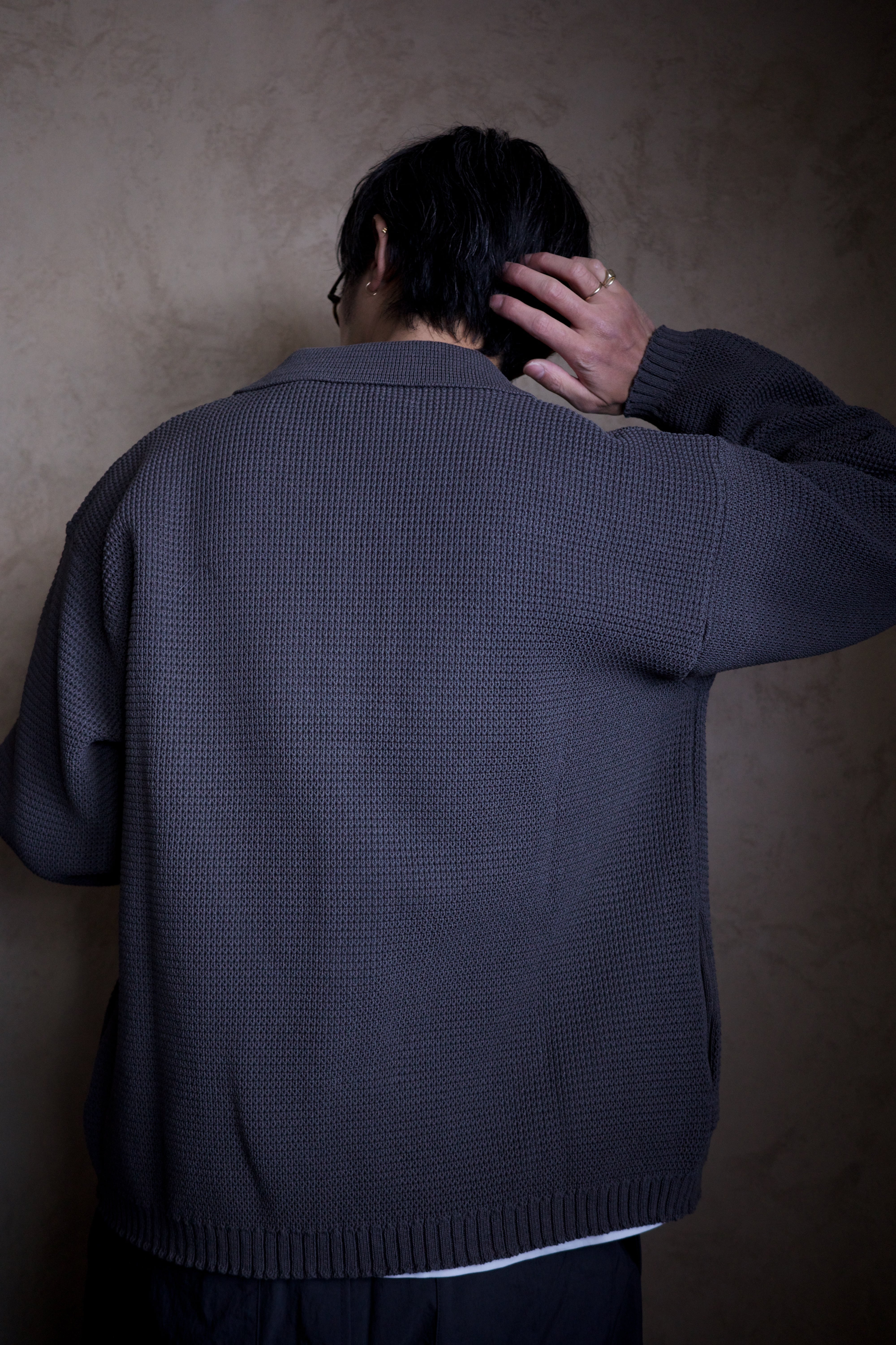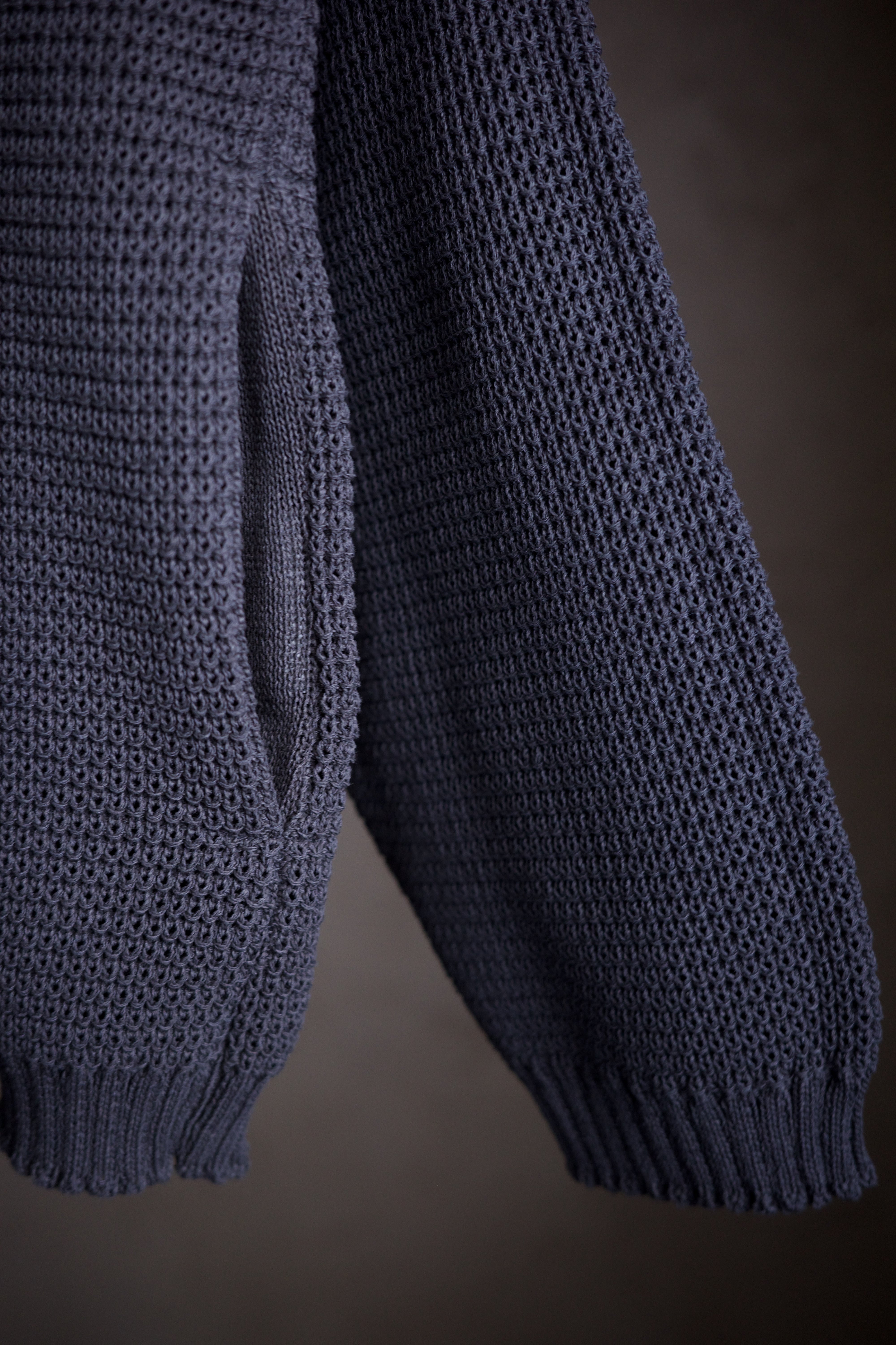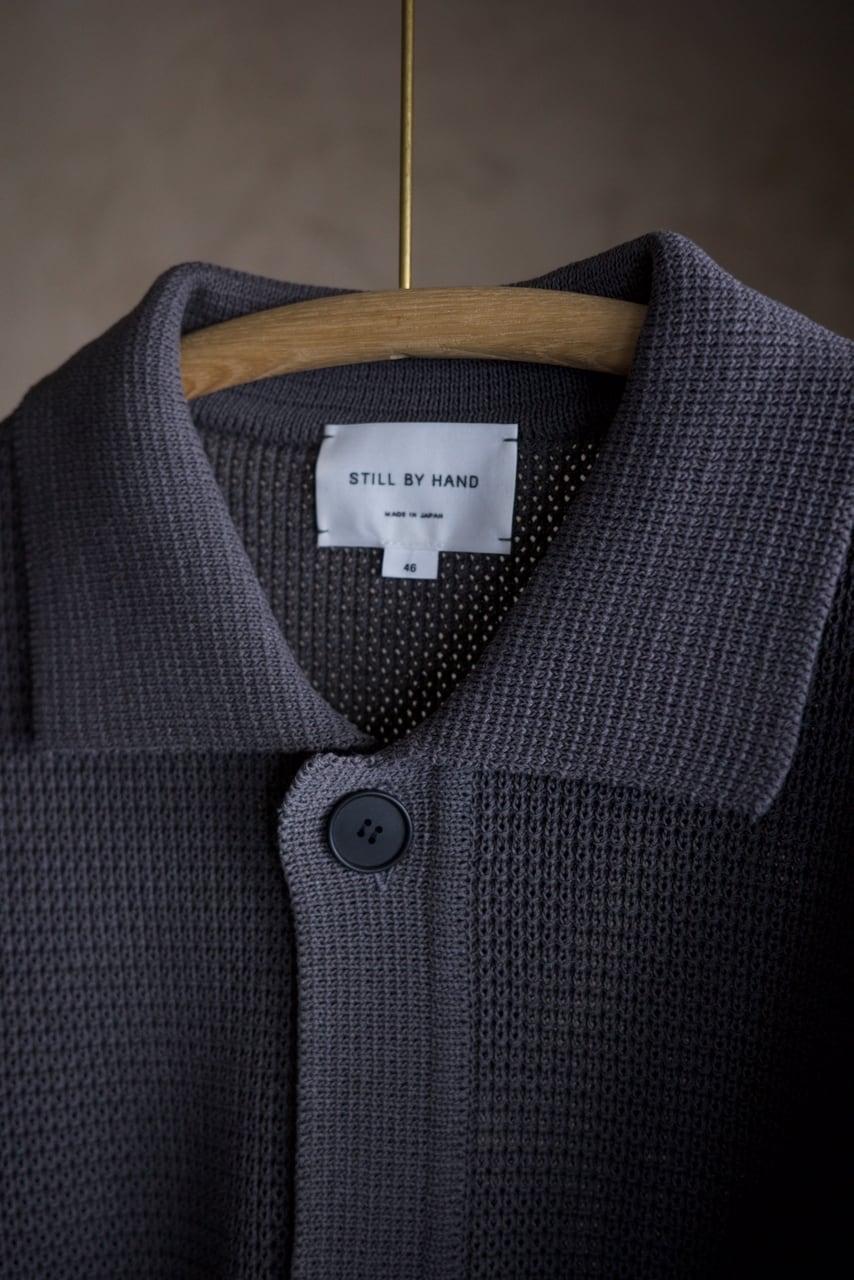 ポリエステルと和紙の混紡糸で7ゲージに編んだ、ニットブルゾンです。