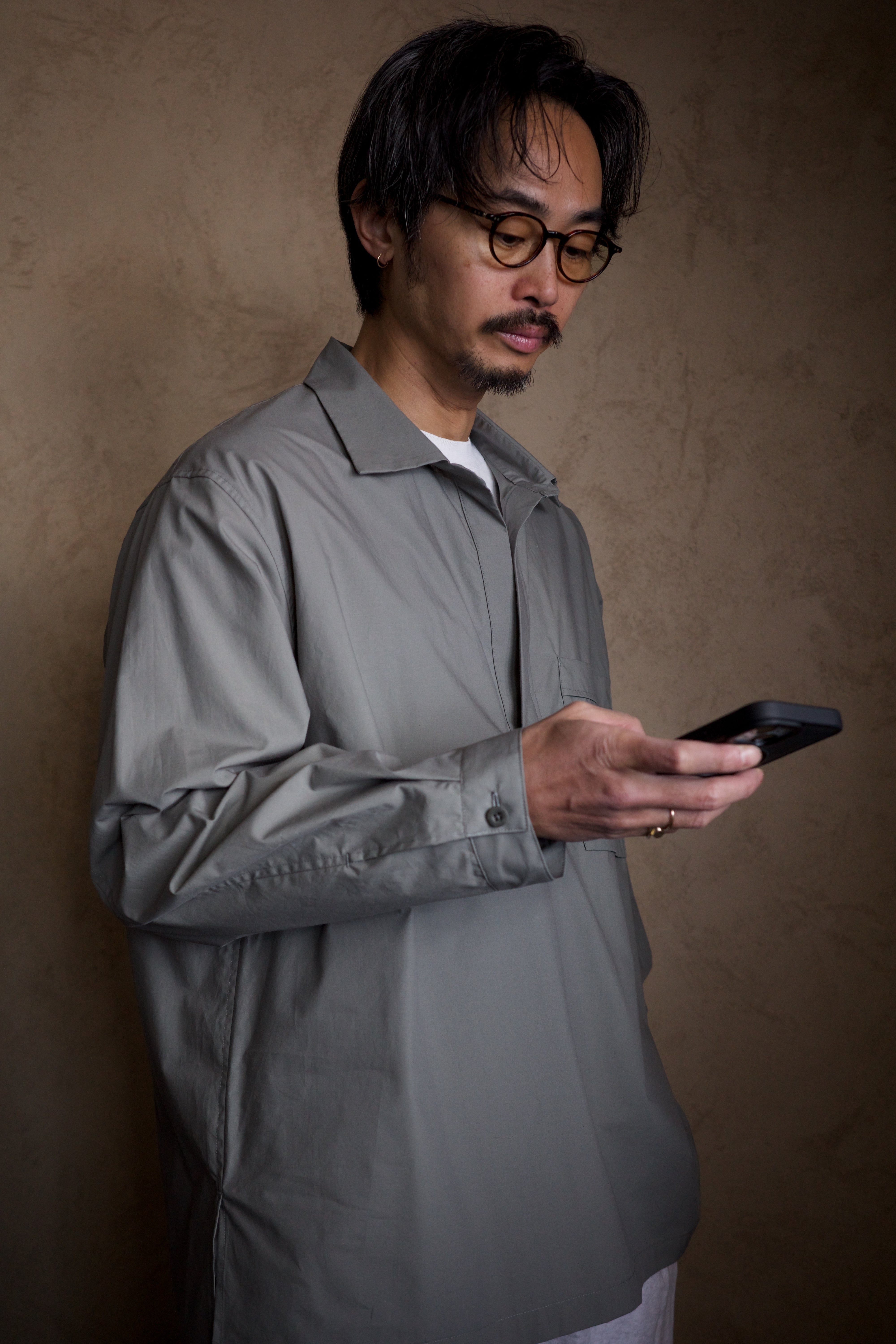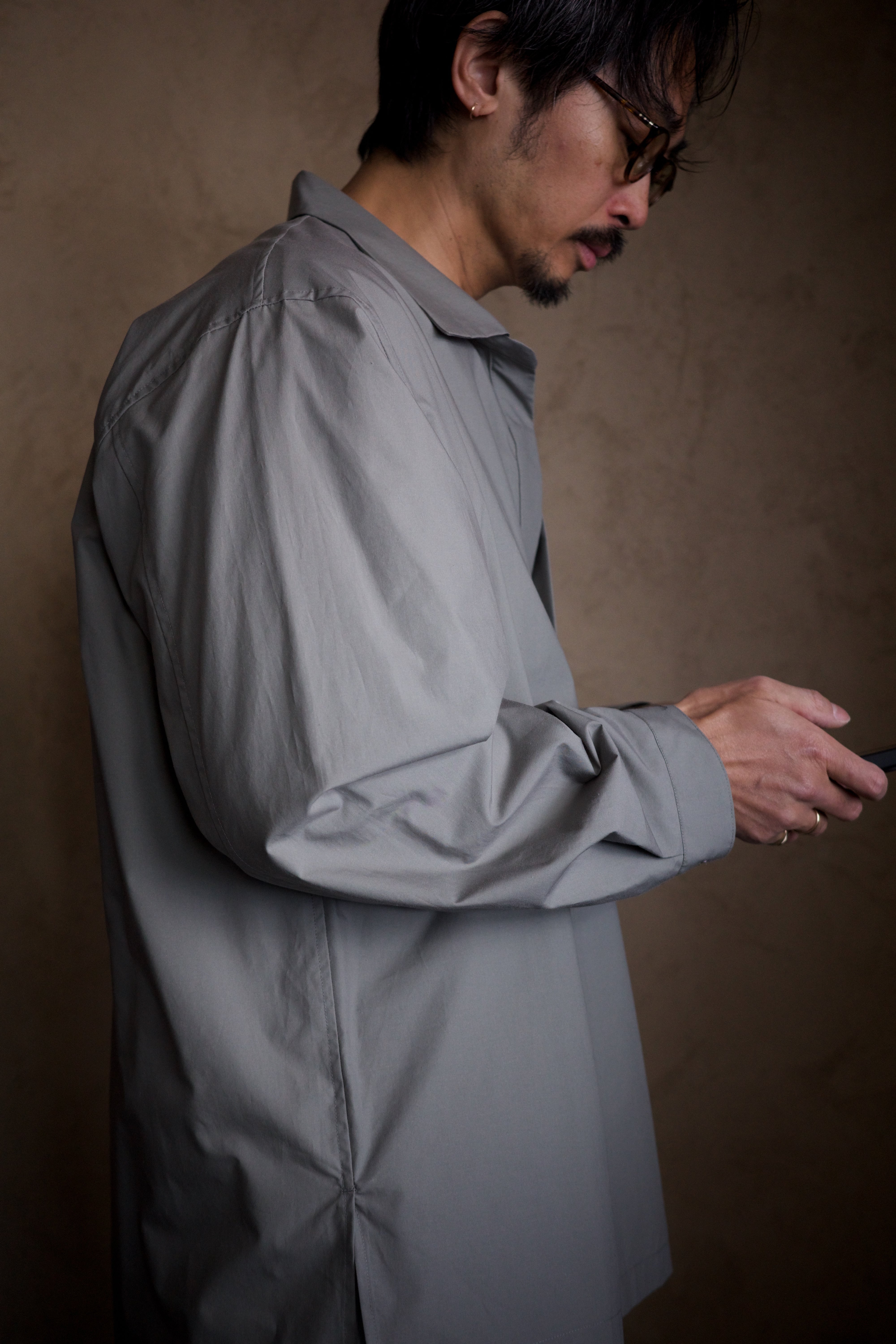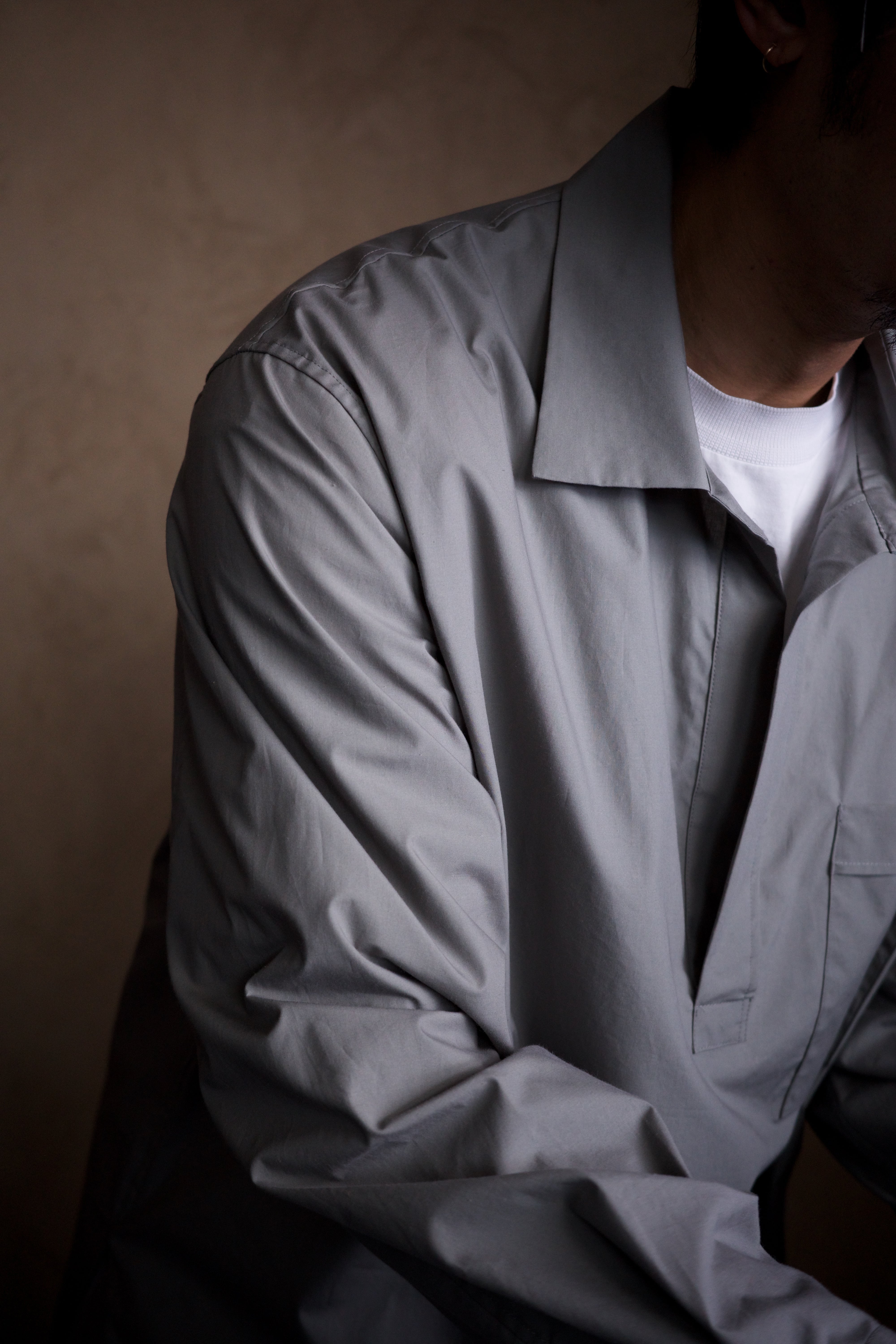 スキッパーポロのようでいて、ライトアウターのような佇まい。ドレープの美しさに、胸元のやり過ぎない揺らぎ。最高です