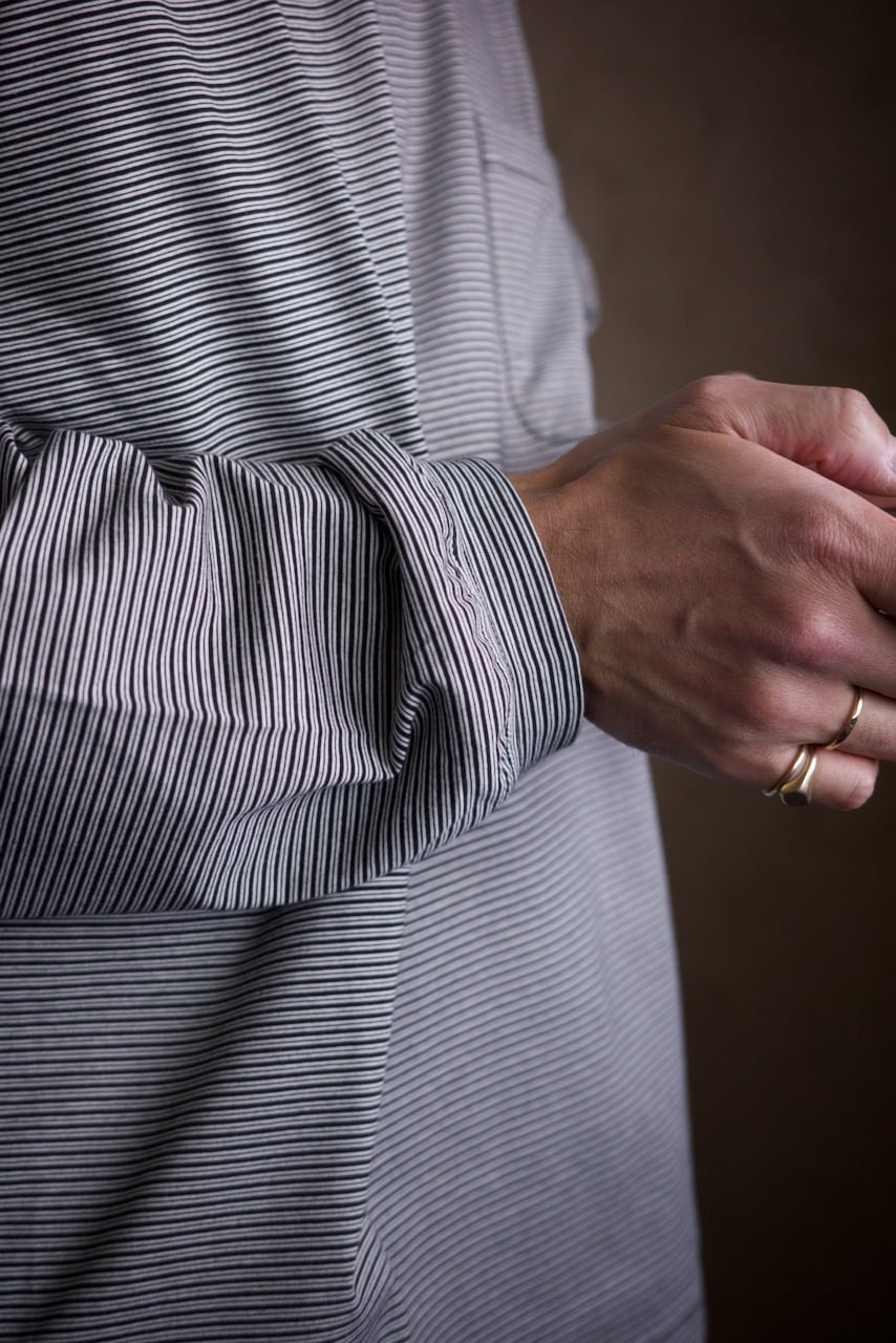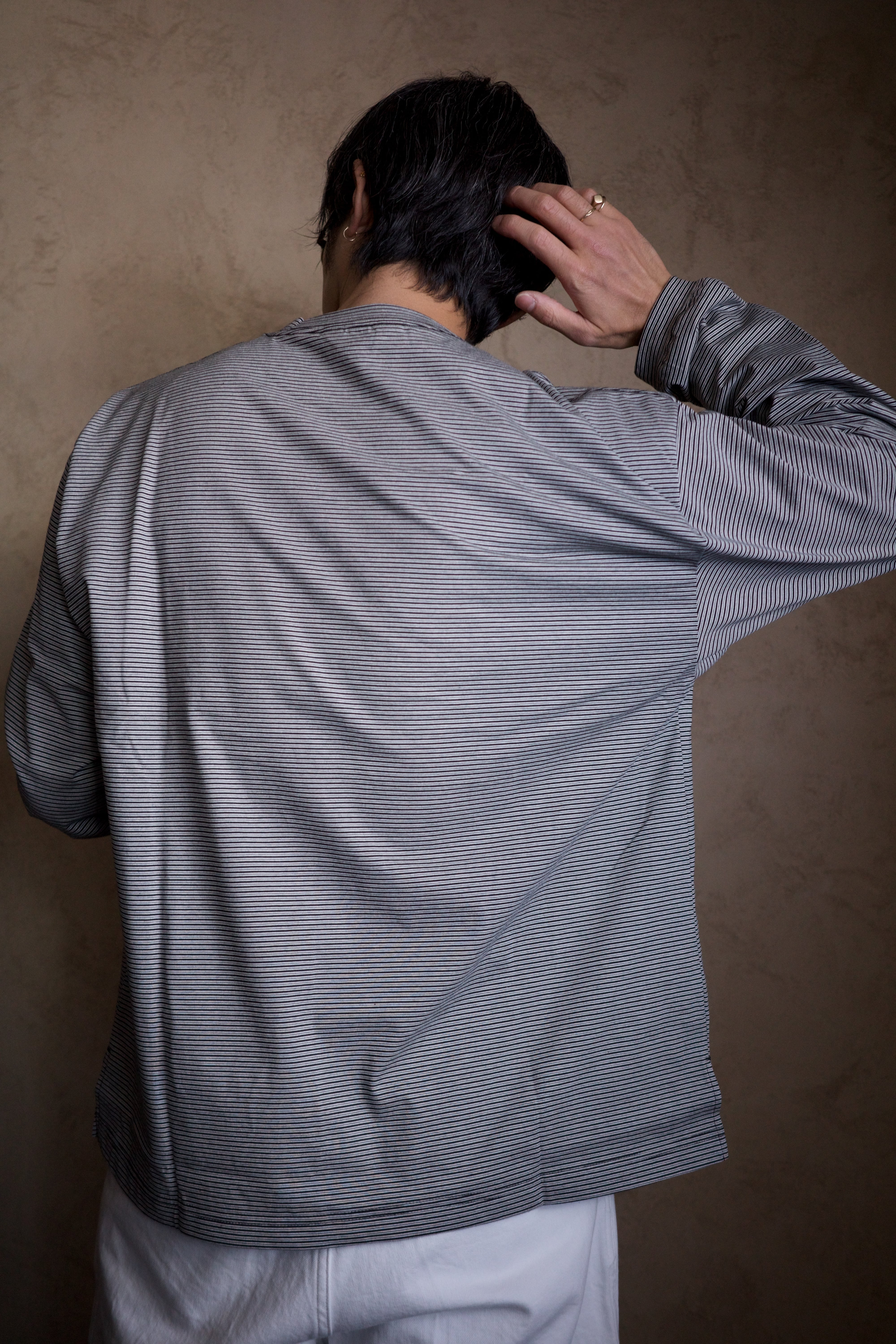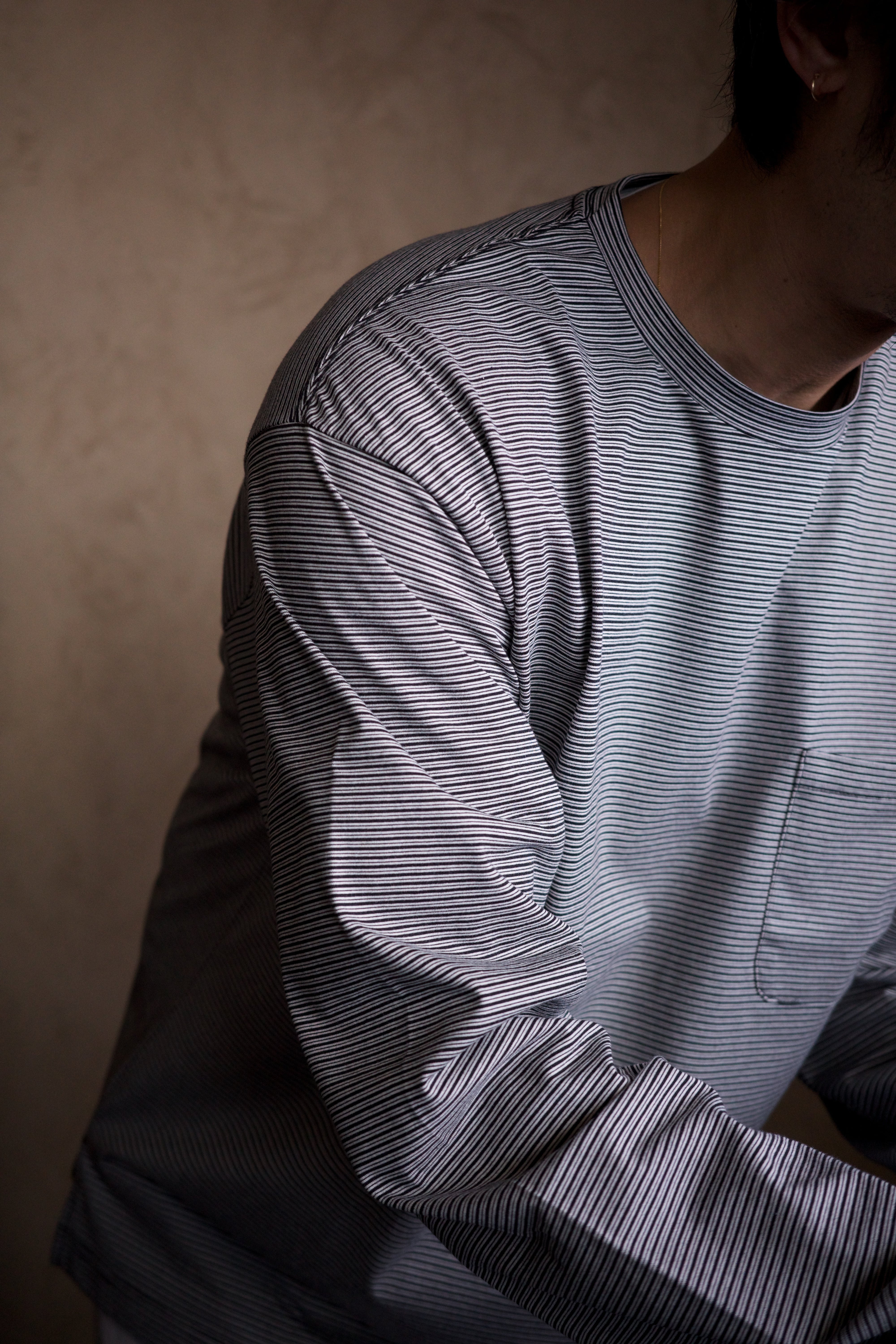 スティルオリジナルのボーダー素材は、カジュアルになりすぎず品がある佇まいに。