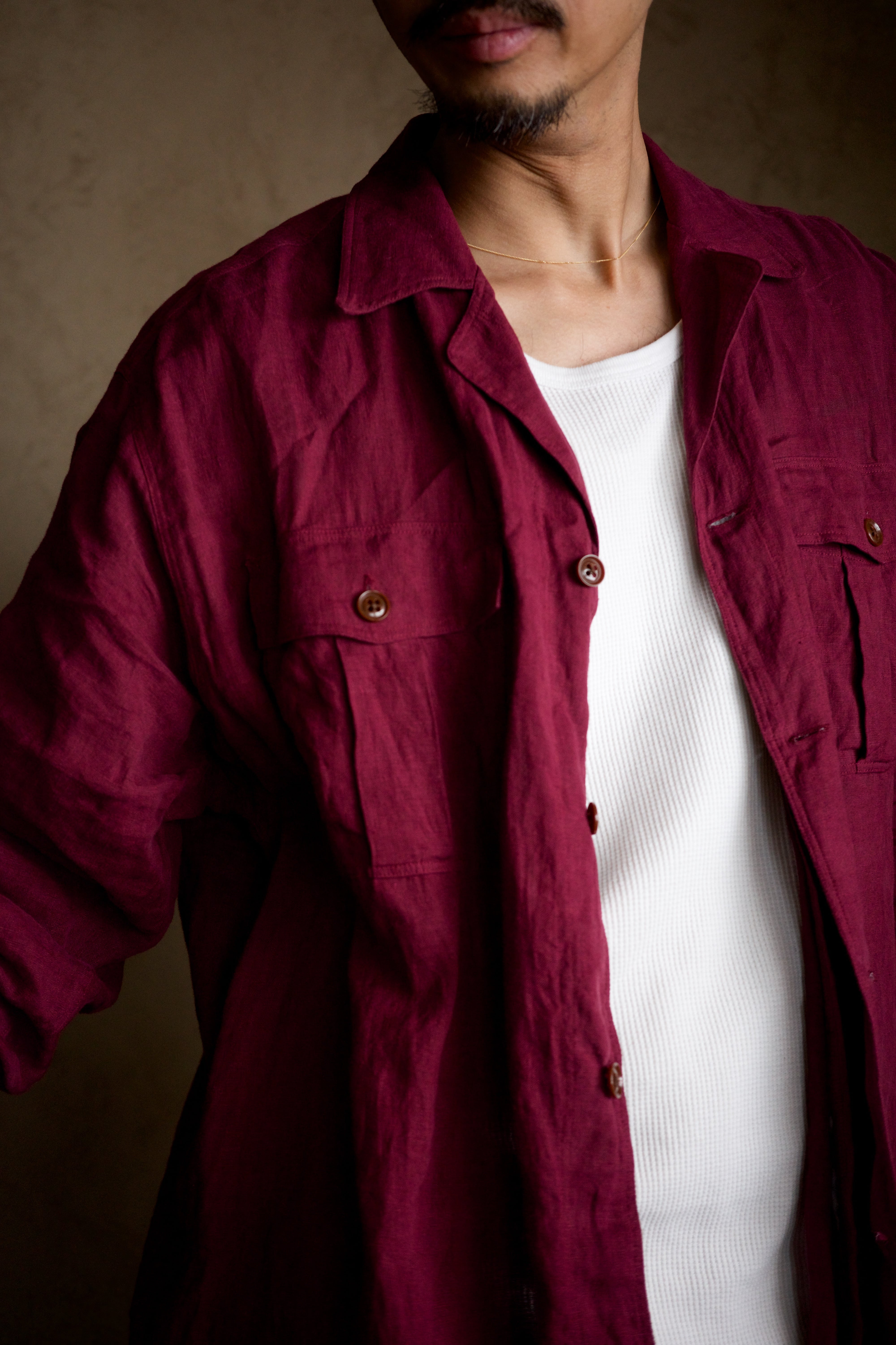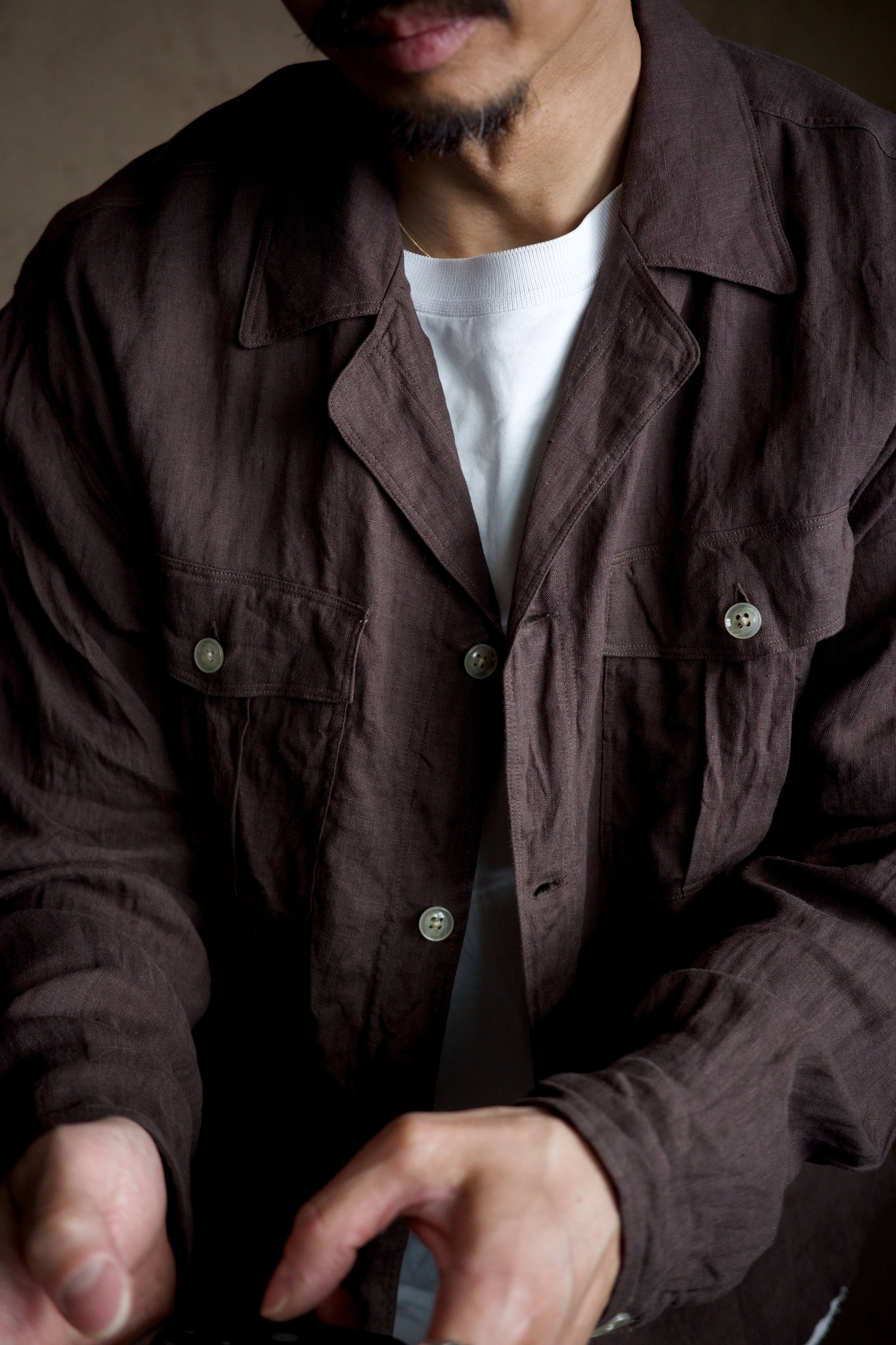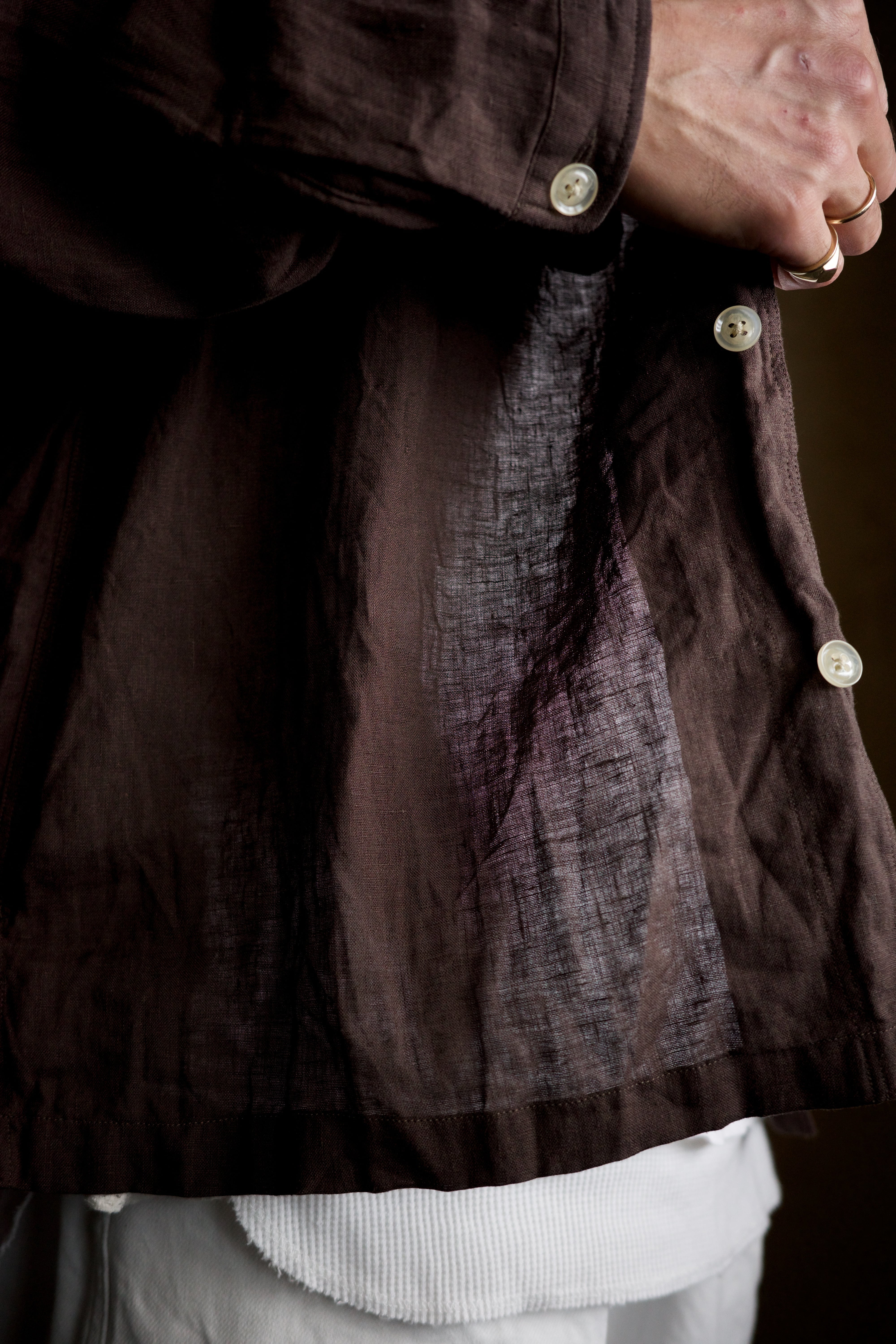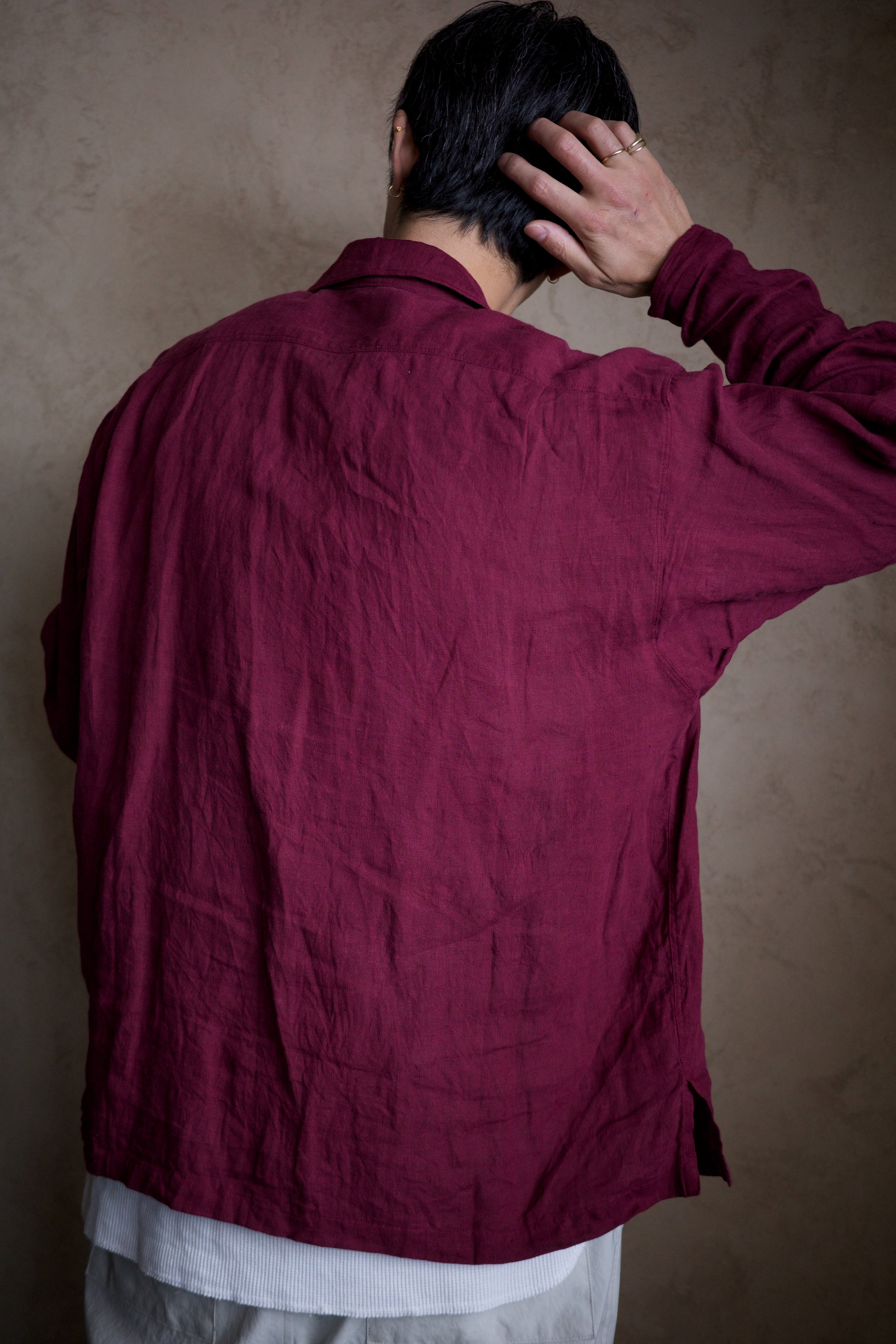洗えば洗うほどとろみが増して、服の風格が出てきます。穴が空くまで着倒したいリネンシャツ。袖を捲るのもおすすめです