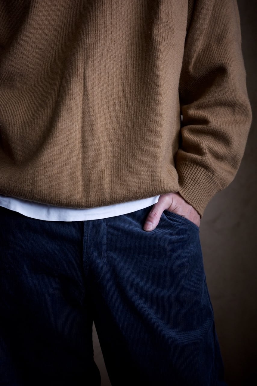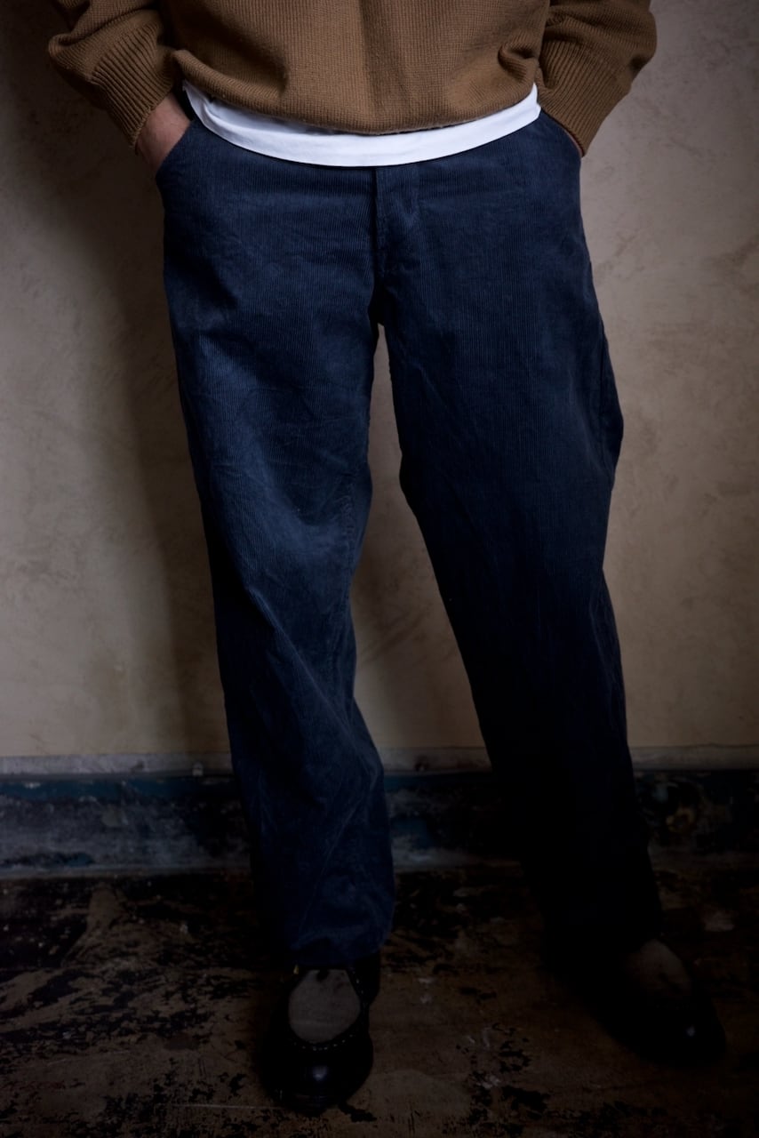 素材は14wの細畝でライトな質感のコーデュロイです。生地の膨らみと、色気ある落ち感。とても良い佇まいです