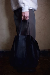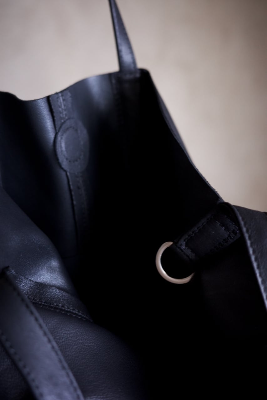 ゴートレザーつまりは山羊革を特殊な技法でダブルフェイスにすることによって、より軽くそしてより柔らかく仕上がります。最初から手に馴染むように柔らかいのと、持った時の落ち感やドレープがとても美しいんです。使い込むともっと艶やシボ感も出てきて、より柔らかくしなやかになって佇まいに色気が増します。