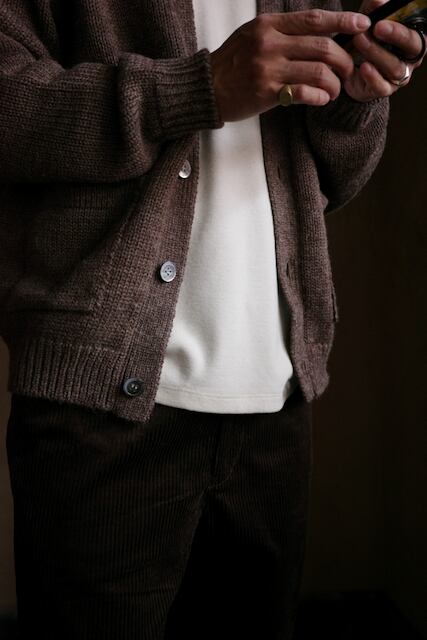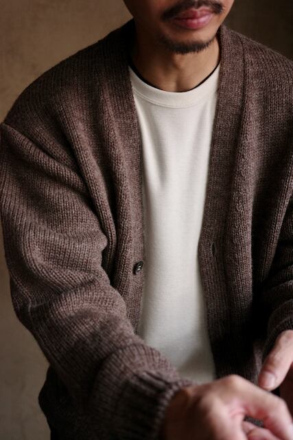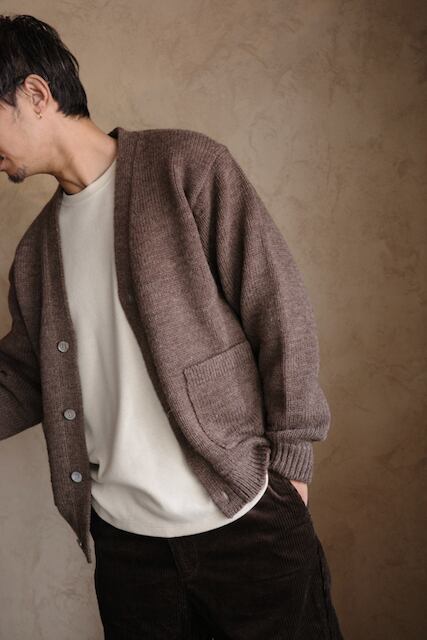 カットソーやシャツにざっくり羽織りたい、いなたくて最高なカーディガンです。