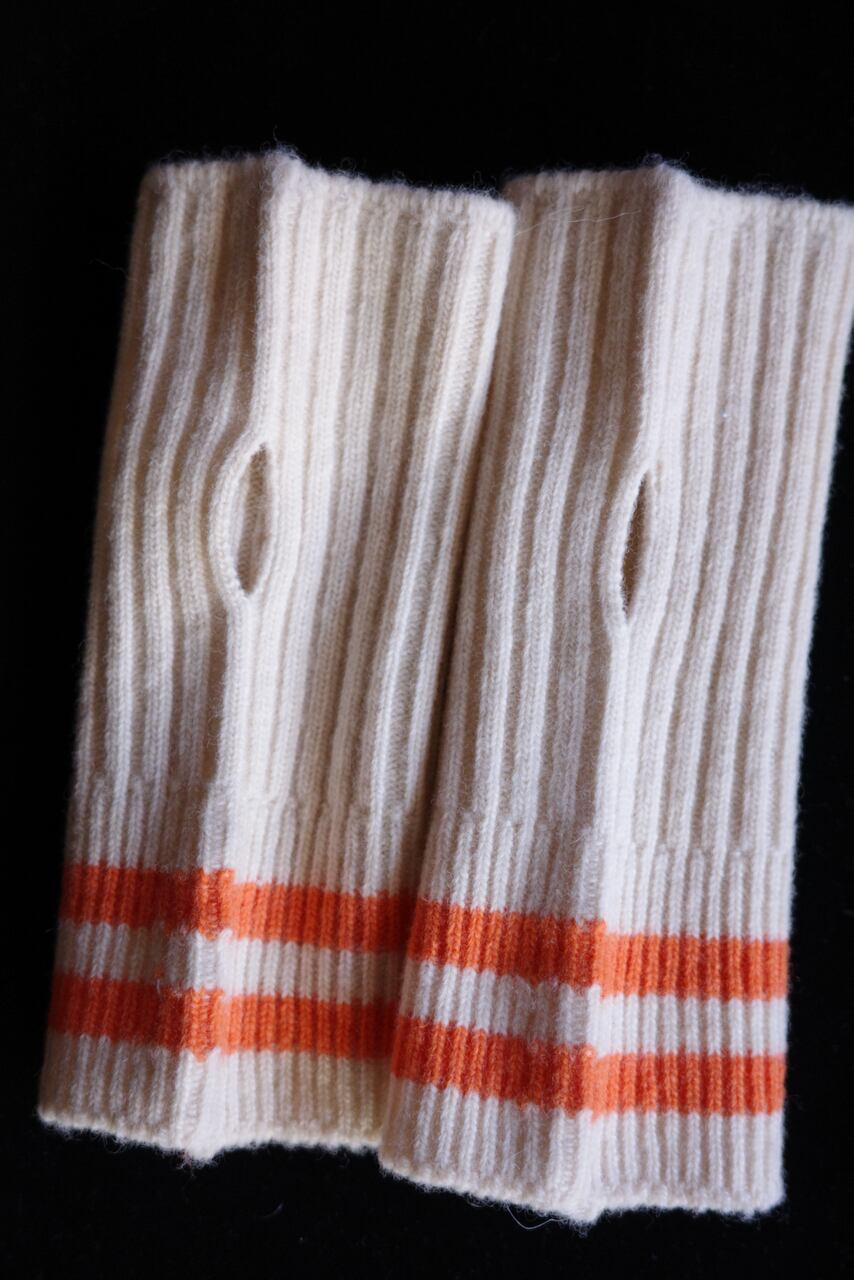 差し色のオレンジがとてもかわいいハンドウォーマーです。