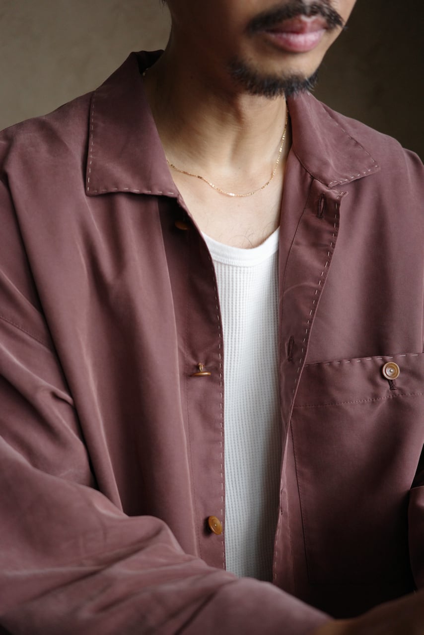 レーヨンのとろりとした生地感に美しいドレープ。そしてハンドステッチの不均等な刺繍の揺らぎ