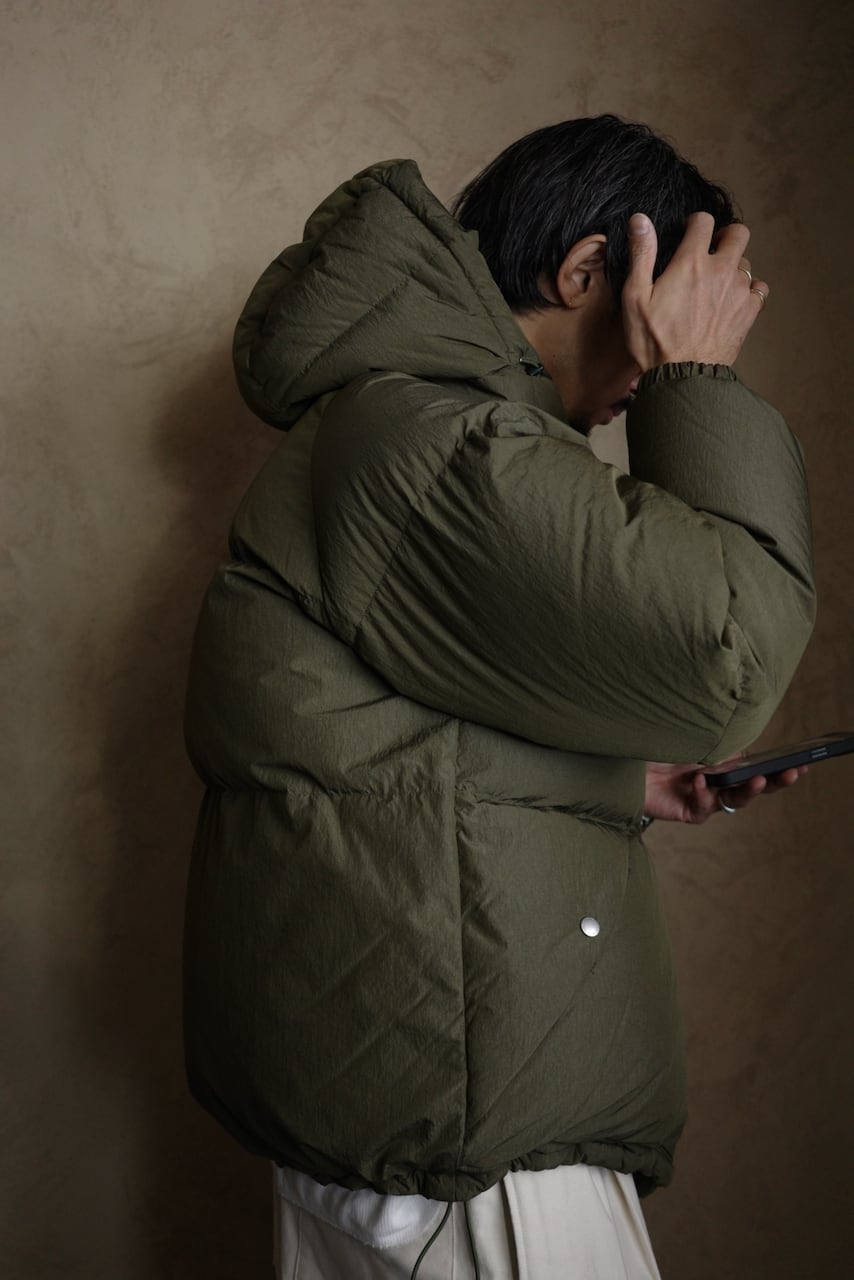 個人的にはボタンを閉めて裾を絞って着るのがおすすめです。このボリューム感と丸みのバランスが最高なんです。